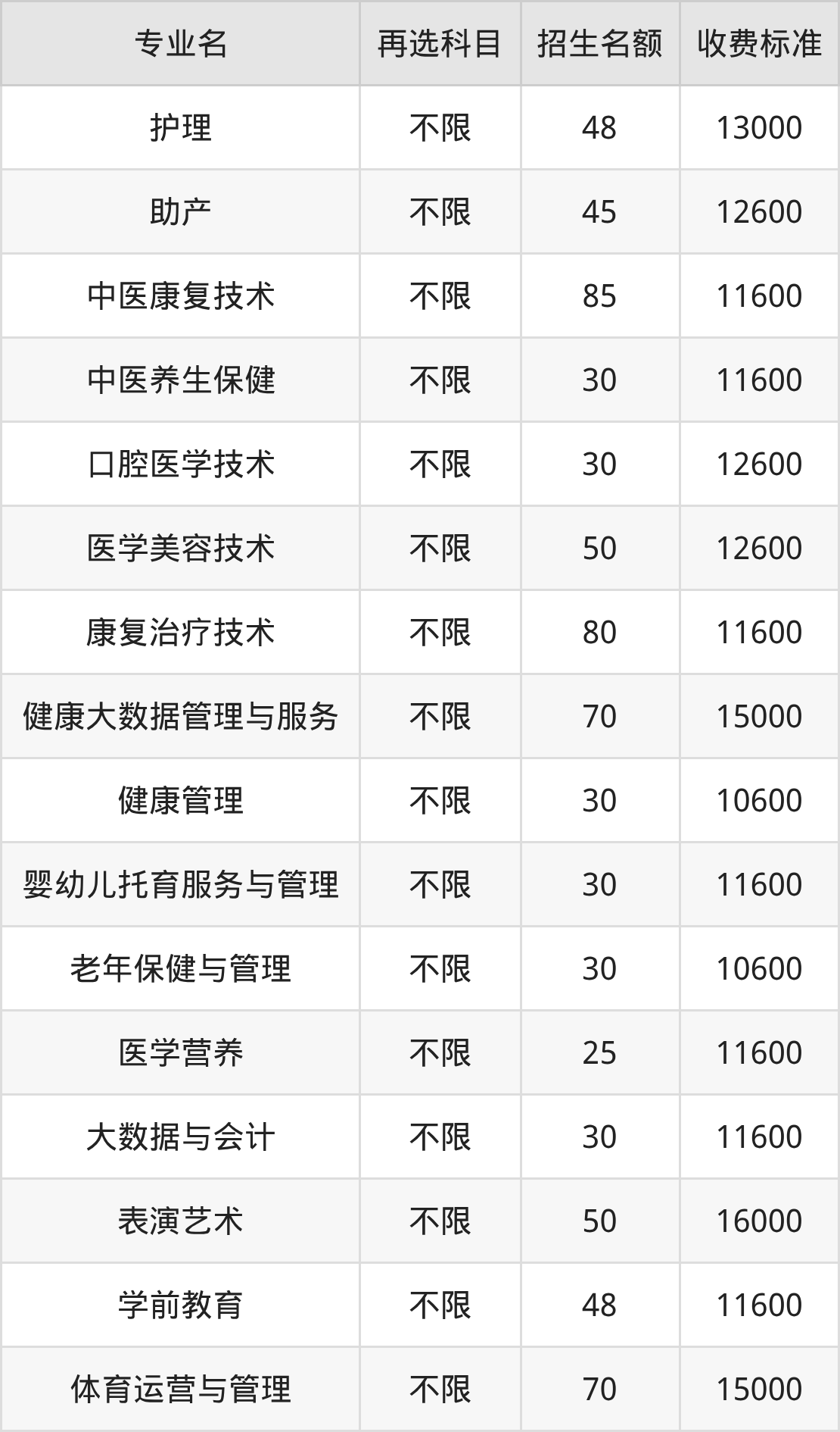 | 高职高专批 | 物理 | 健康管理 | 40 |