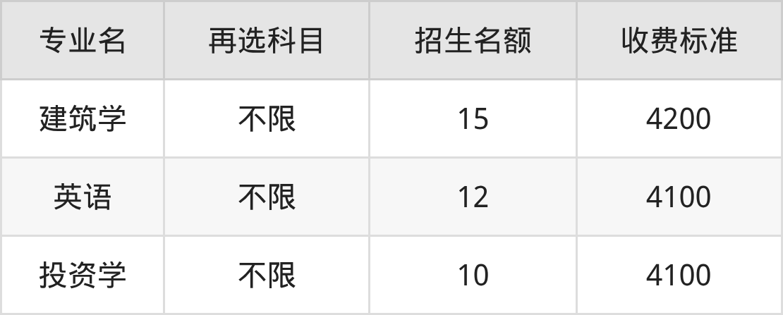 | 本科批 | 历史 | 投资学 | 10 |
