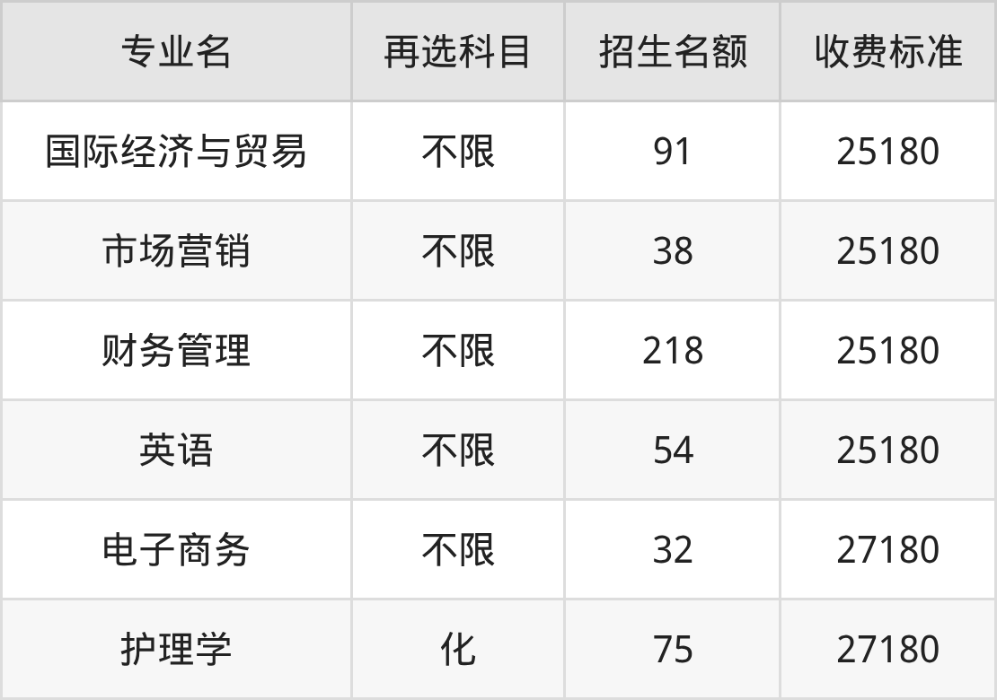 | 批次 | 首选 科目 | 专业名 | 招生 名额 |