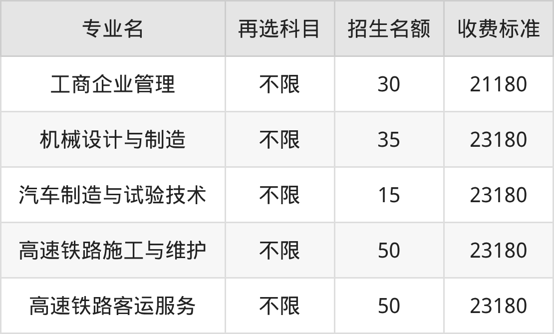 湖南交通工程学院在历史组高职专科批招生的各个专业,每年的学费是21180元-23180元。招生人数最多的专业是高速铁路施工与维护,2025年招50人,学费是23180元。