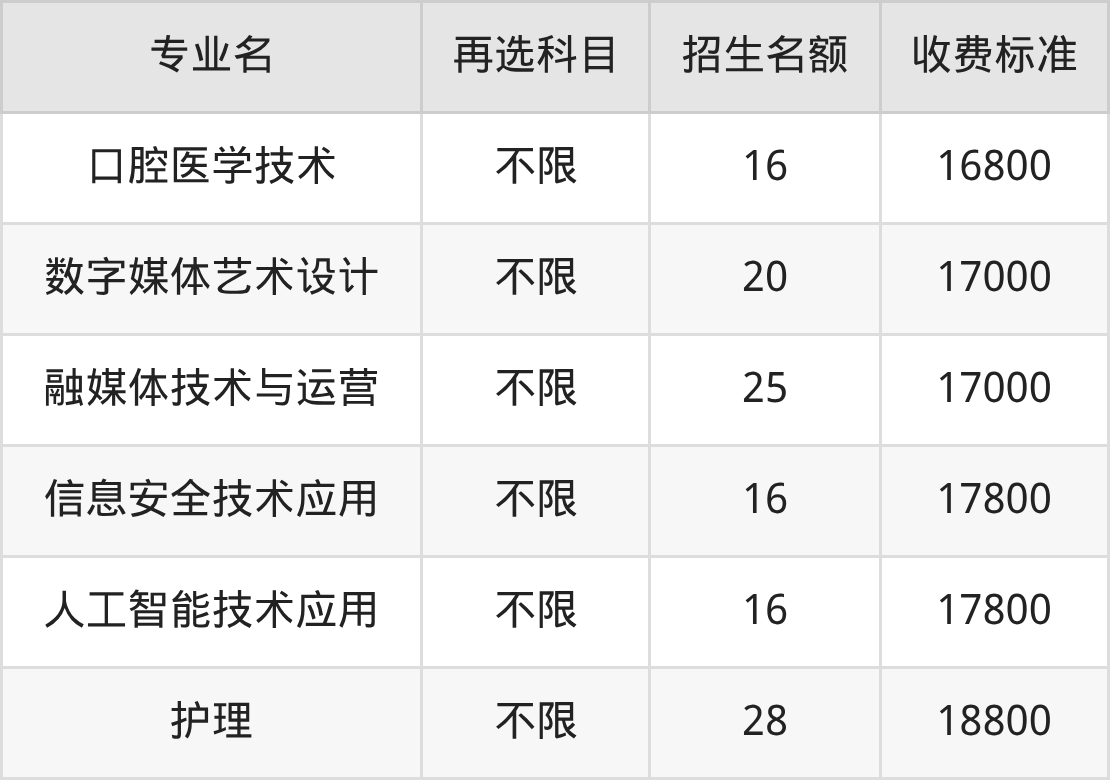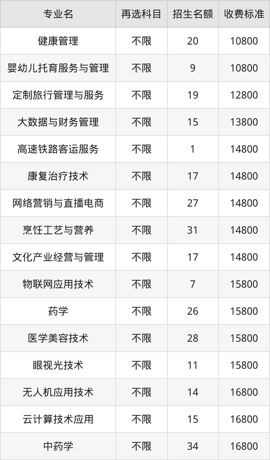 | 高职专科批 | 历史 | 健康管理 | 20 |