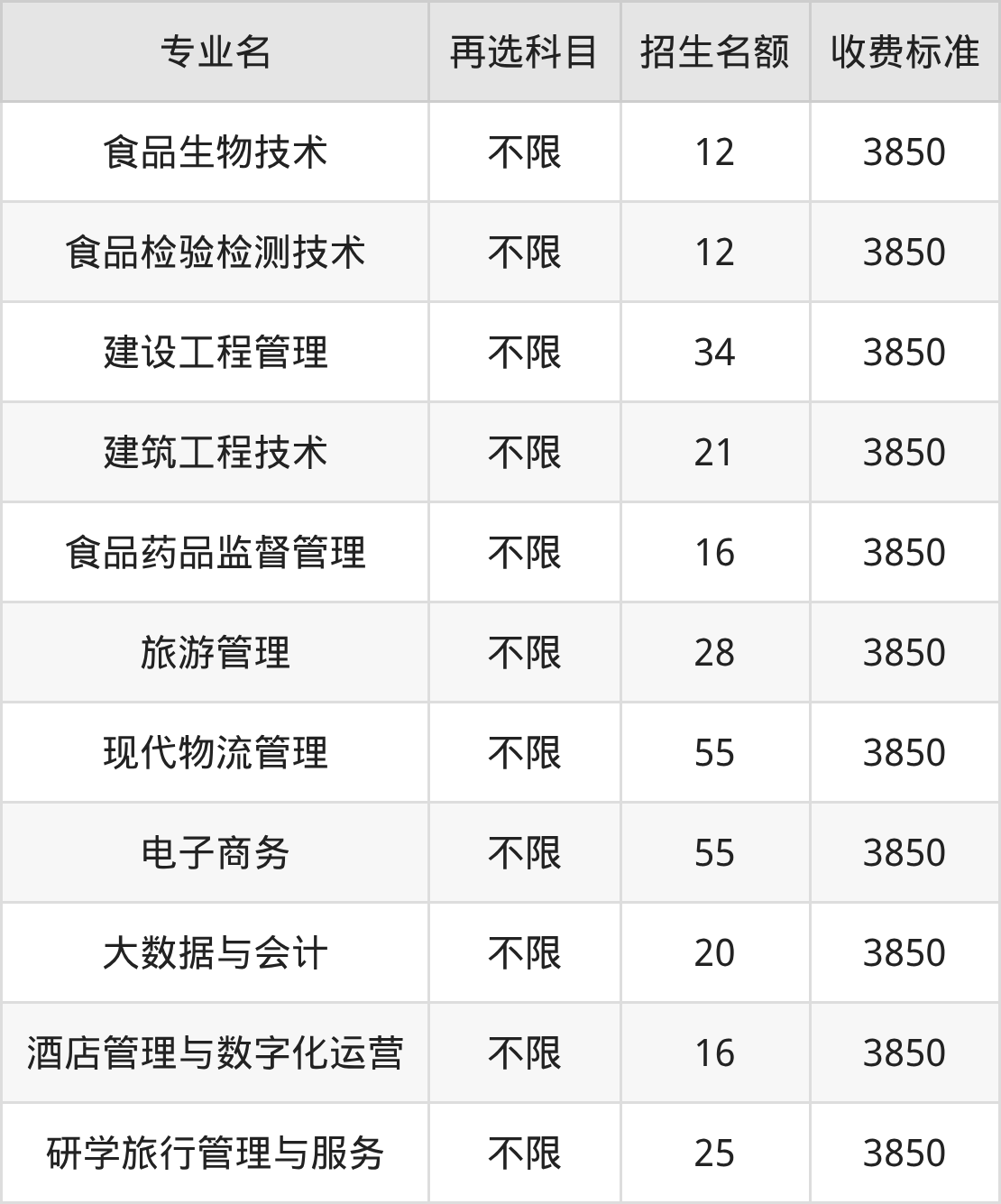 贵州轻工职业大学在历史组高职专科批招生的各个专业,每年的学费是3850元。招生人数最多的专业是现代物流管理,2025年招55人,学费是3850元。