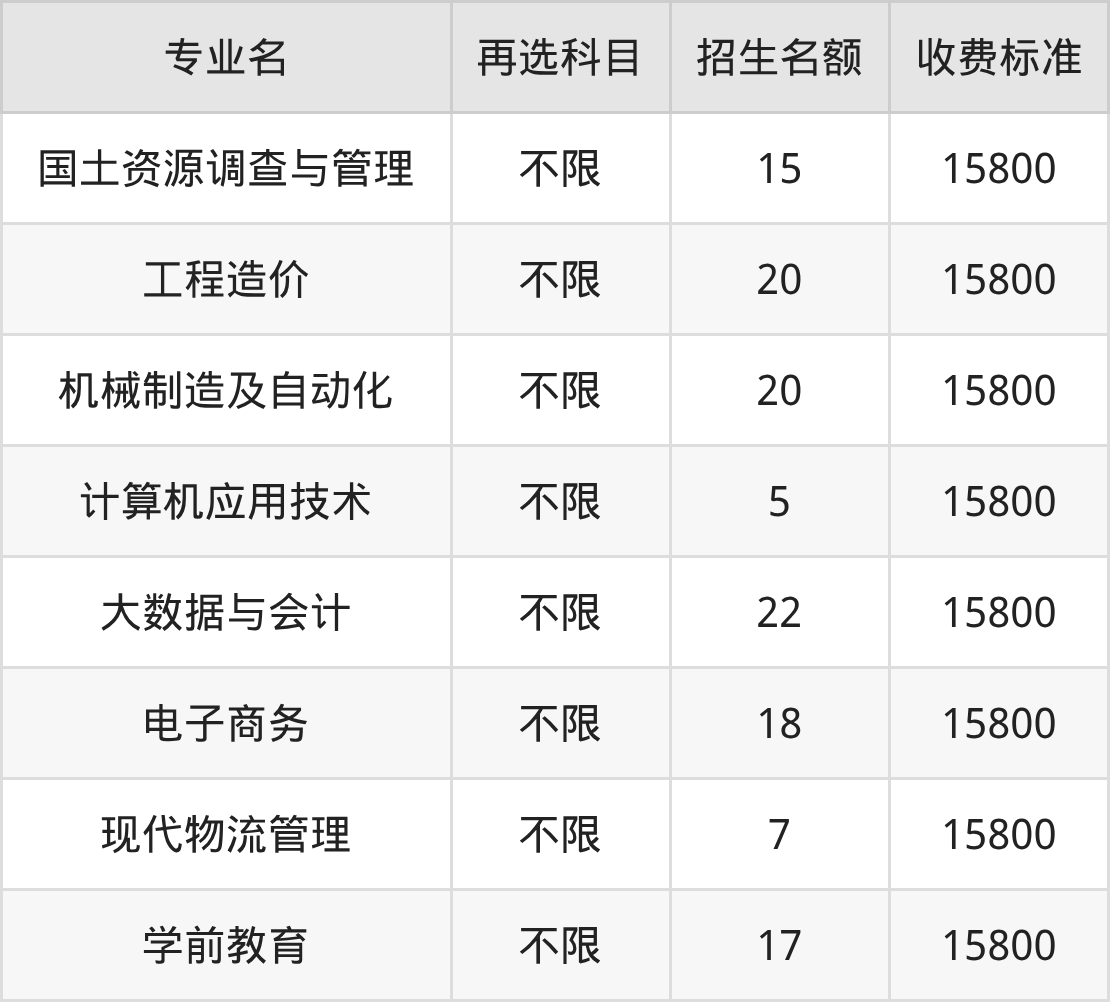 保定理工学院在历史组专科批招生的各个专业,每年的学费是15800元。招生人数最多的专业是大数据与会计,2025年招22人,学费是15800元。