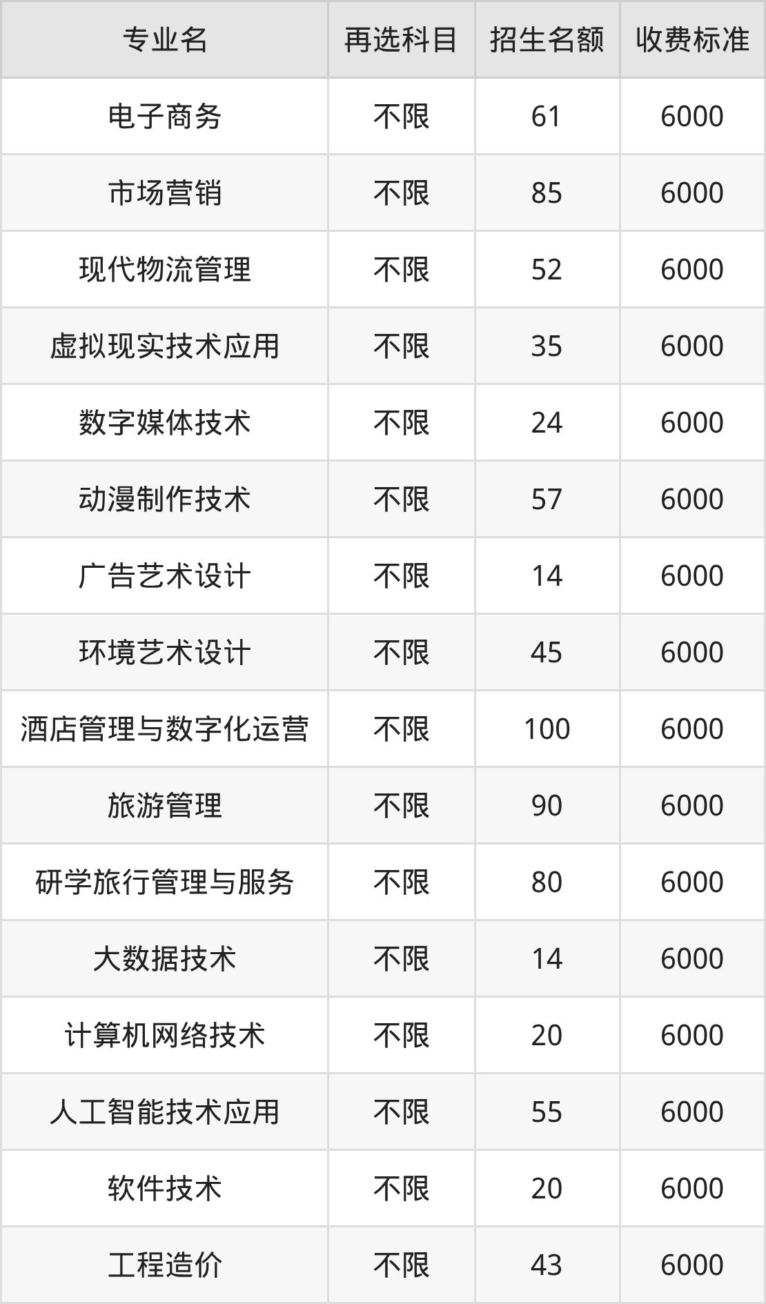 | 高职专科批 | 历史 | 工程造价 | 43 |