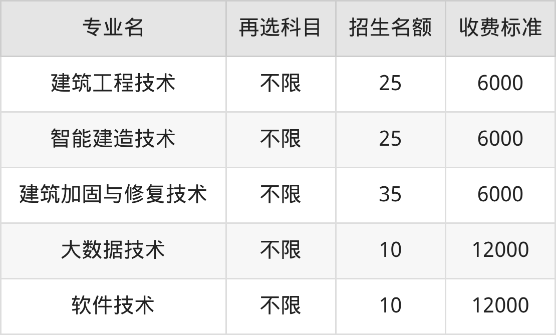 | 高职专科批 | 历史 | 建筑工程技术 | 25 |