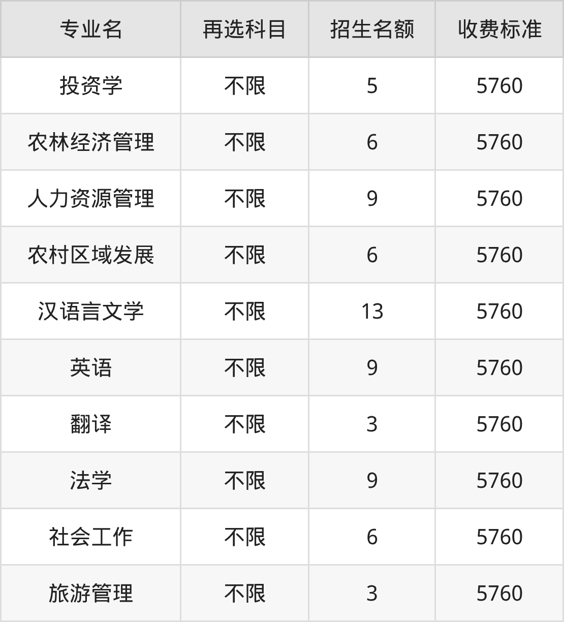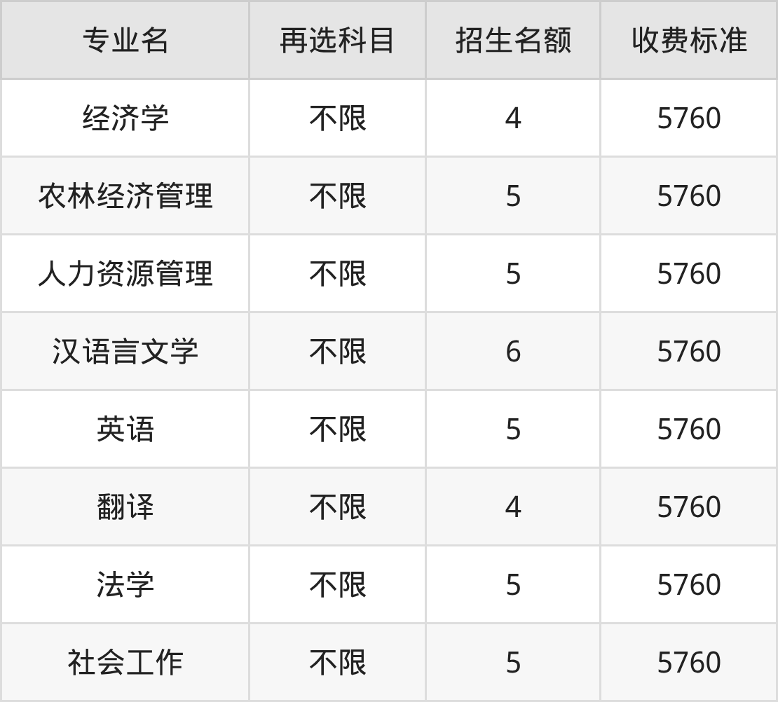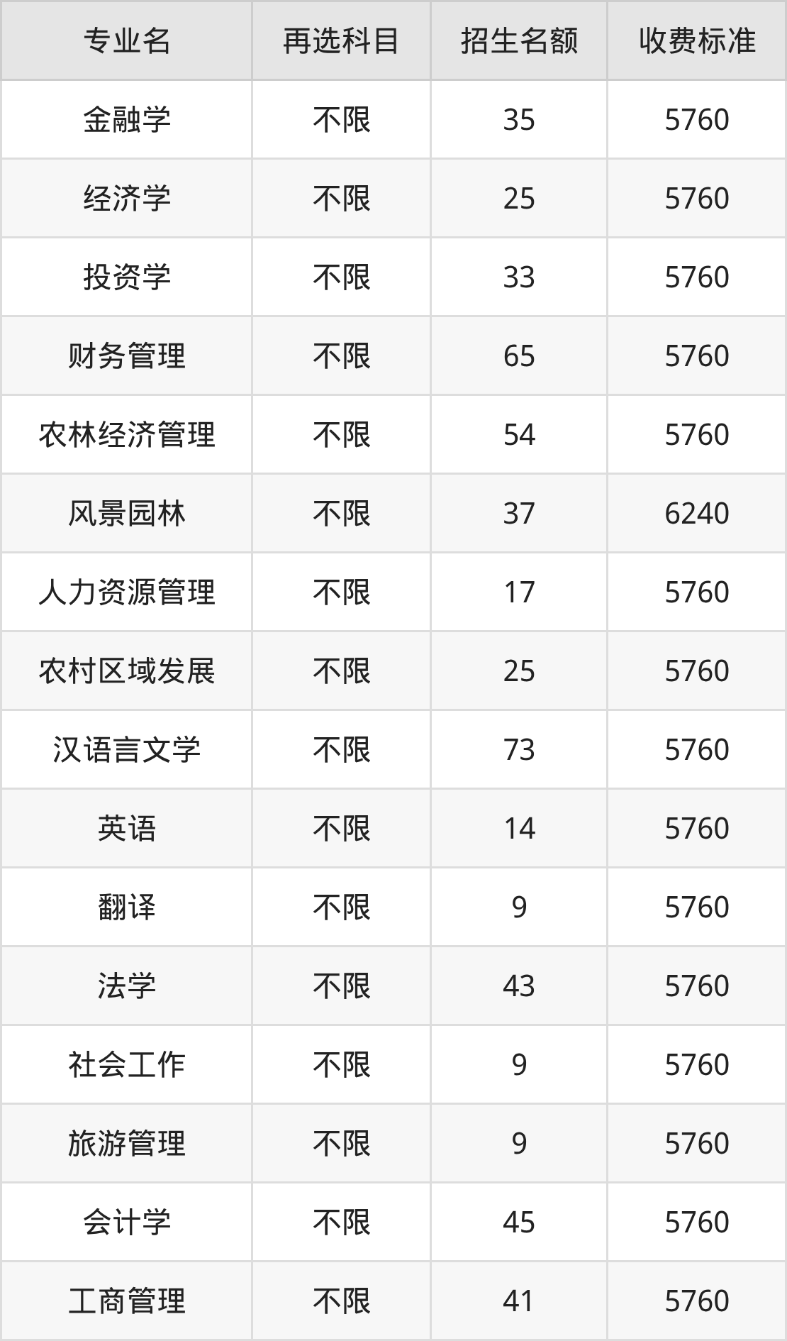 | 本科批A段(地方专项) | 历史 | 农林经济管理 | 5 |