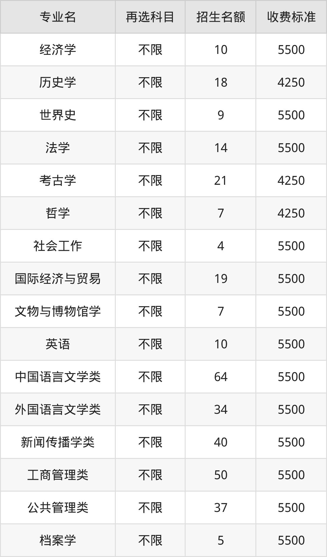 西北大学在历史组本科批招生的各个专业,每年的学费是4250元-15400元。招生人数最多的专业是中国语言文学类,2025年招64人,学费是5500元。