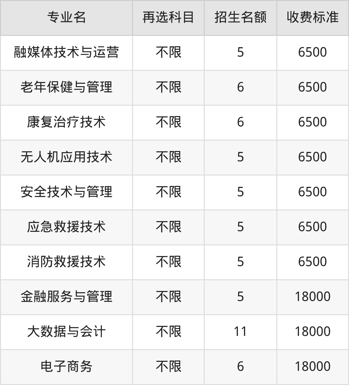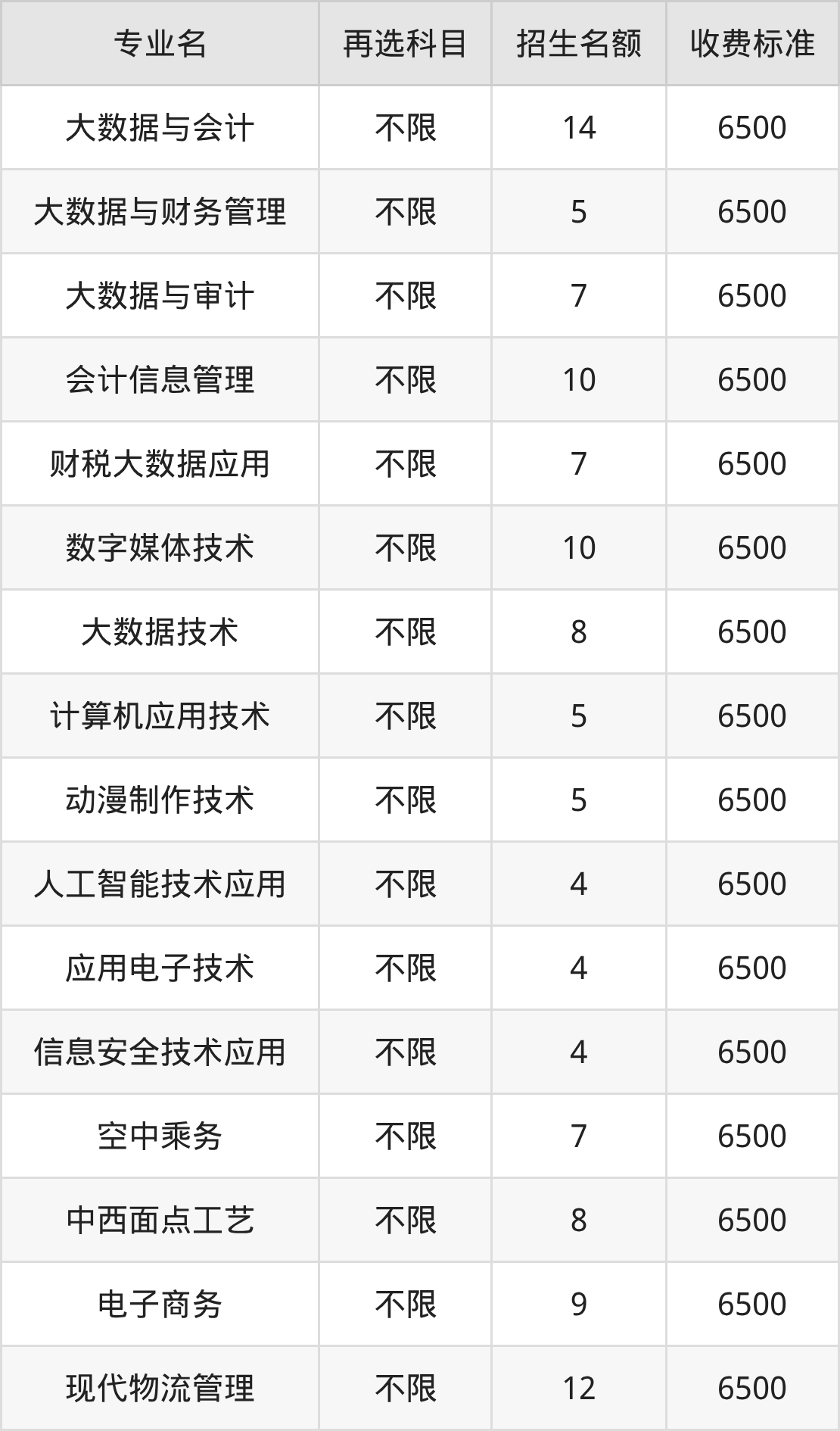 | 高职专科批 | 物理 | 会计信息管理 | 10 |