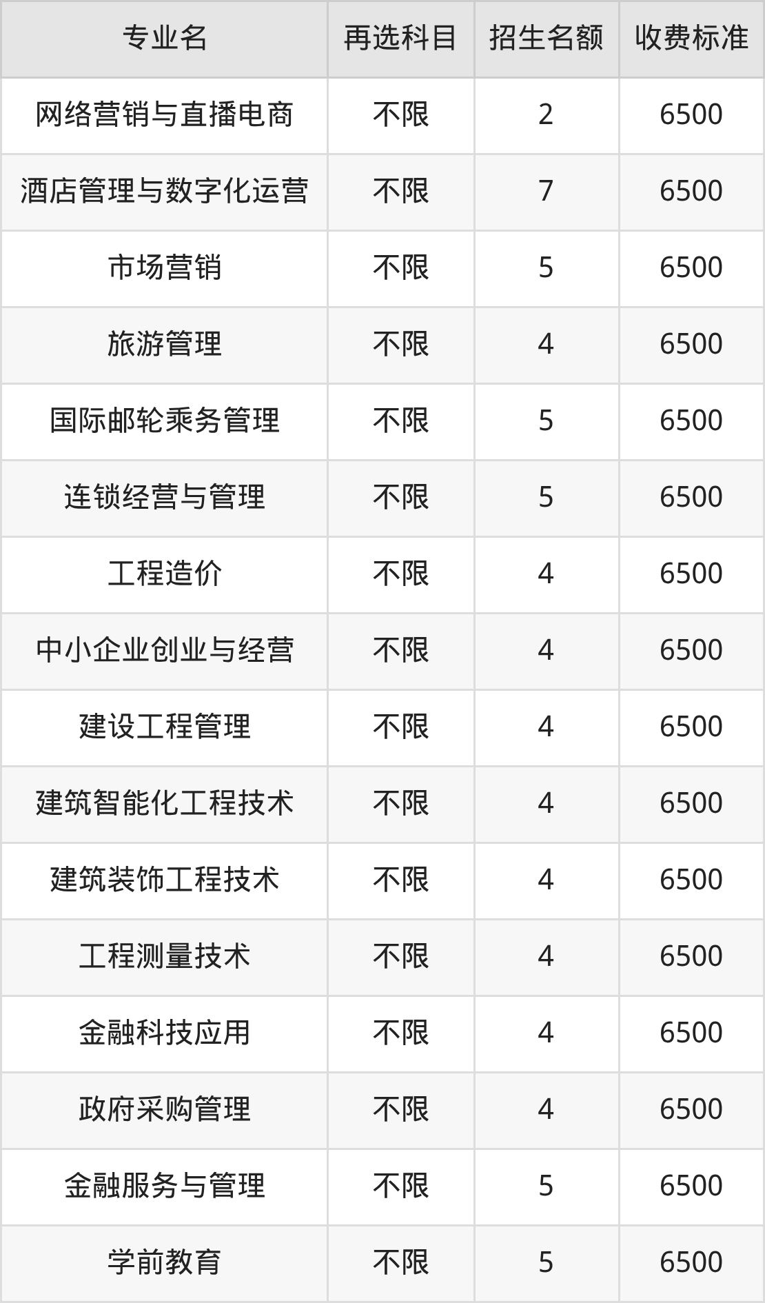 | 高职专科批 | 物理 | 工程造价 | 6 |
