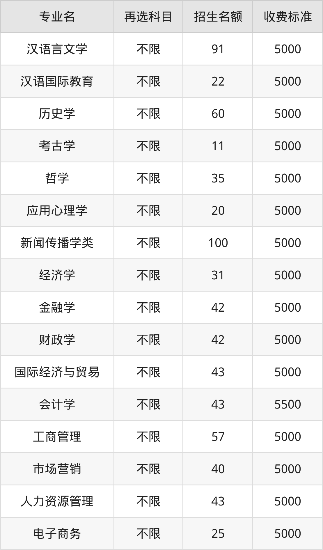 安徽大学在历史组本科批招生的各个专业,每年的学费是5000元-5500元。招生人数最多的专业是新闻传播学类,2025年招100人,学费是5000元。