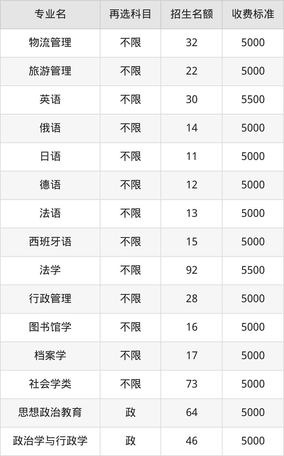 | 本科批 | 物理 | 旅游管理 | 6 |
