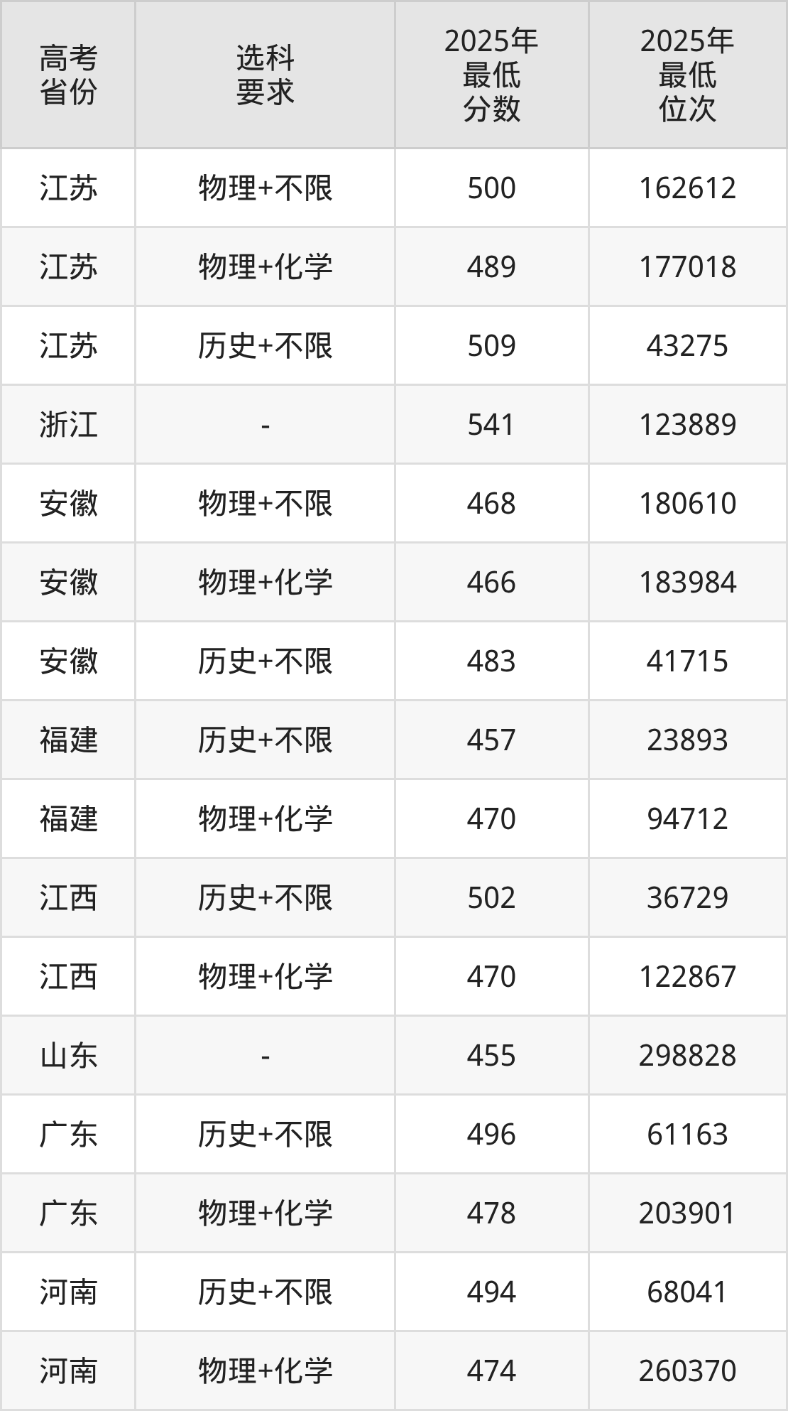 在2025年安徽高考物理类招生时,公办本科收分最低的是乌鲁木齐职业大学003组,最低分是239分、位次是318674位。再看马鞍山学院,2025年在安徽物理类的最低录取分数线是466分,最低位次是183984位。