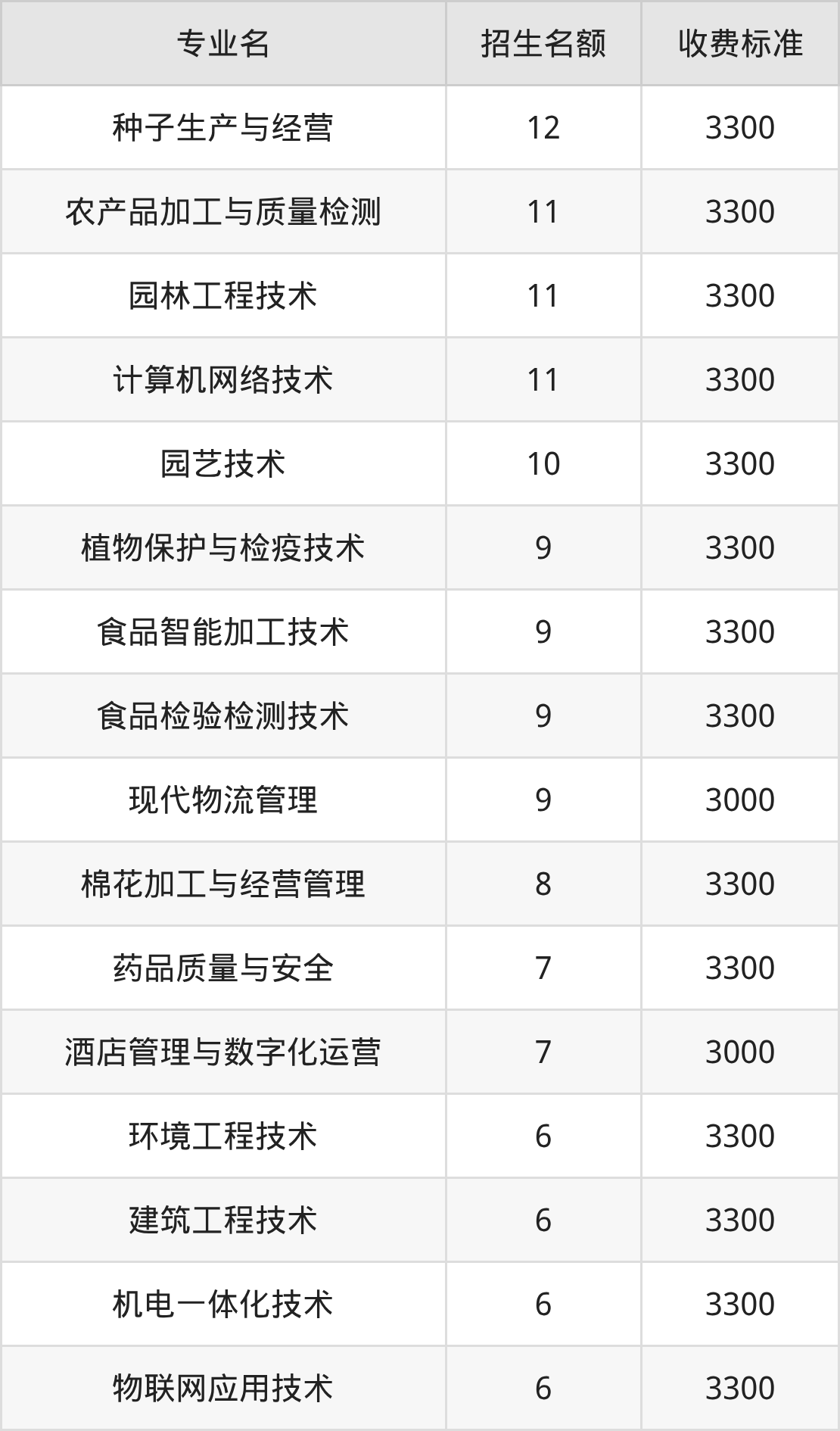 二、新疆农业职业技术大学各专业收费标准