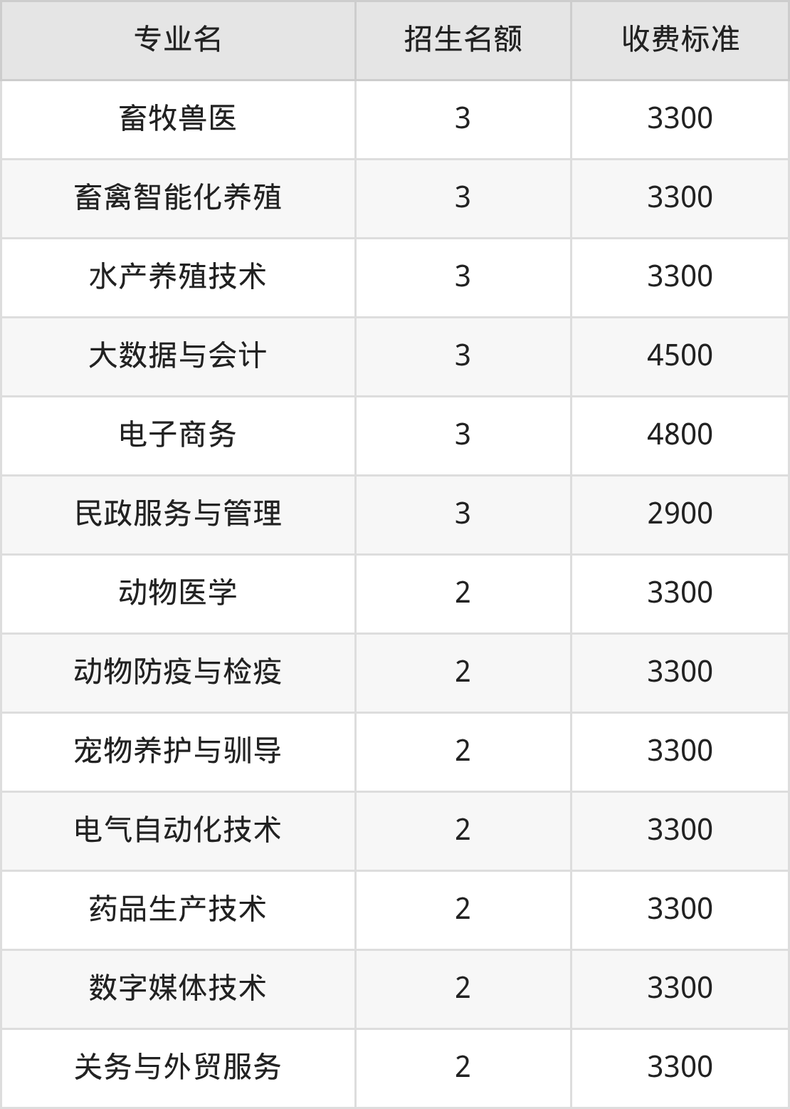 36.畜牧兽医:学费是3300元