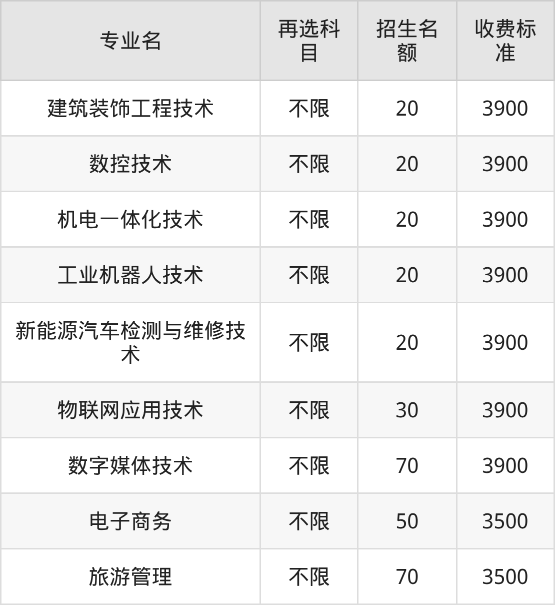 | 高职专科批 | 历史 | 建筑装饰工程技术 | 20 |