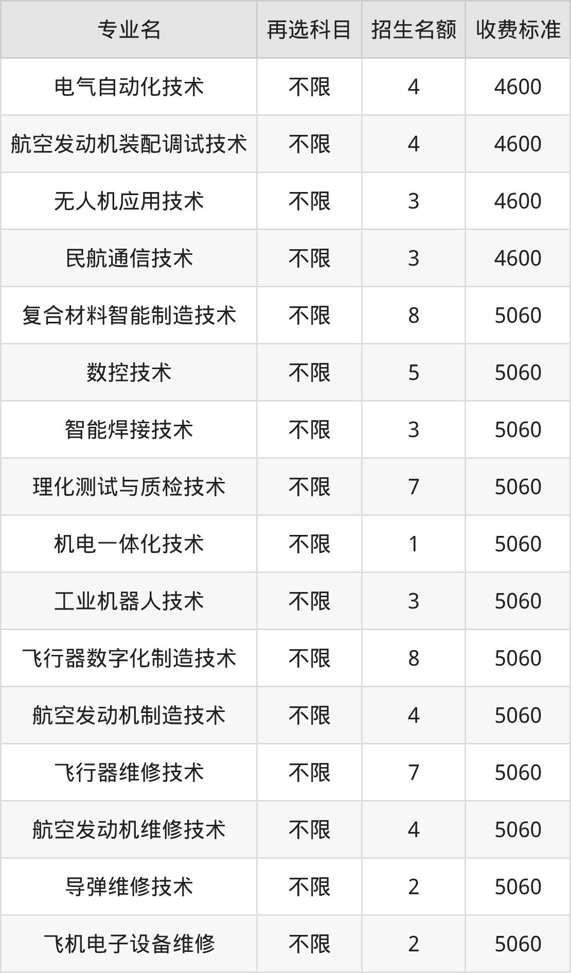 | 高职专科批 | 历史 | 通用航空器维修 | 5 |