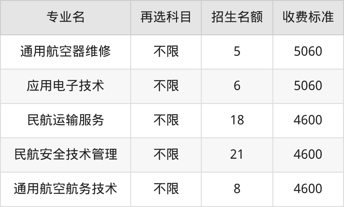 | 高职专科批 | 历史 | 通用航空航务技术 | 8 |
