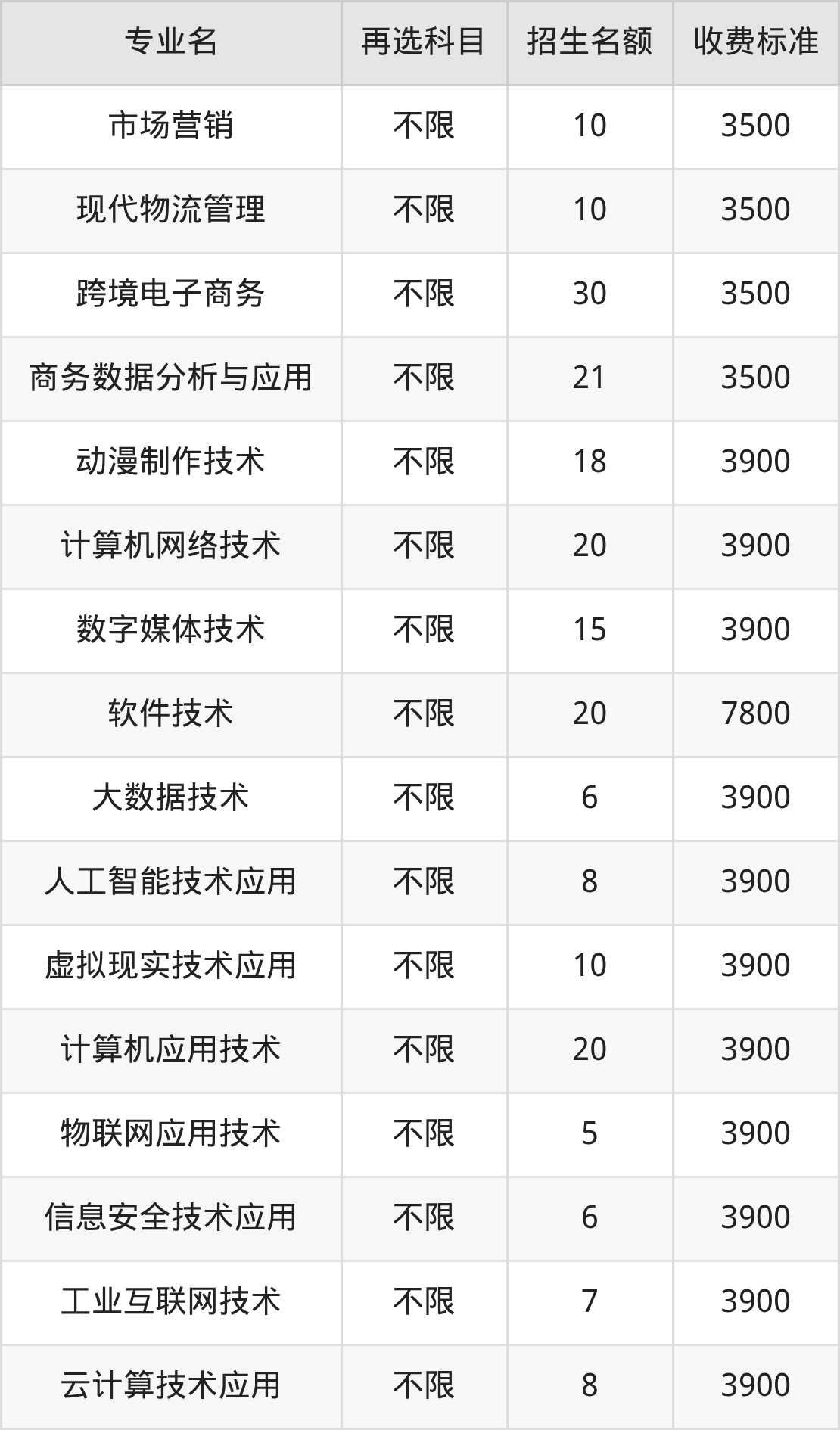 | 高职专科批 | 历史 | 软件技术 | 20 |