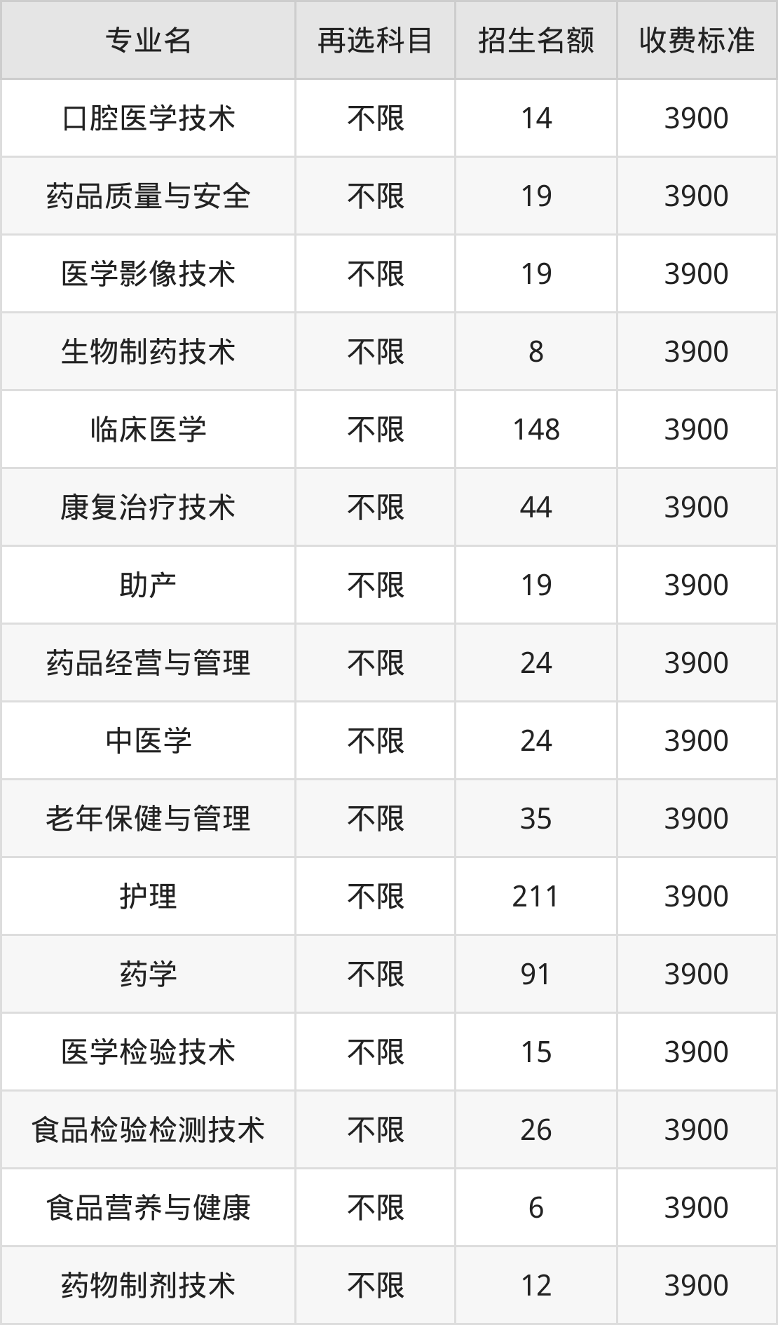 安庆医药高等专科学校在历史组高职专科批招生的各个专业,每年的学费是3900元。招生人数最多的专业是护理,2024年招211人,学费是3900元。