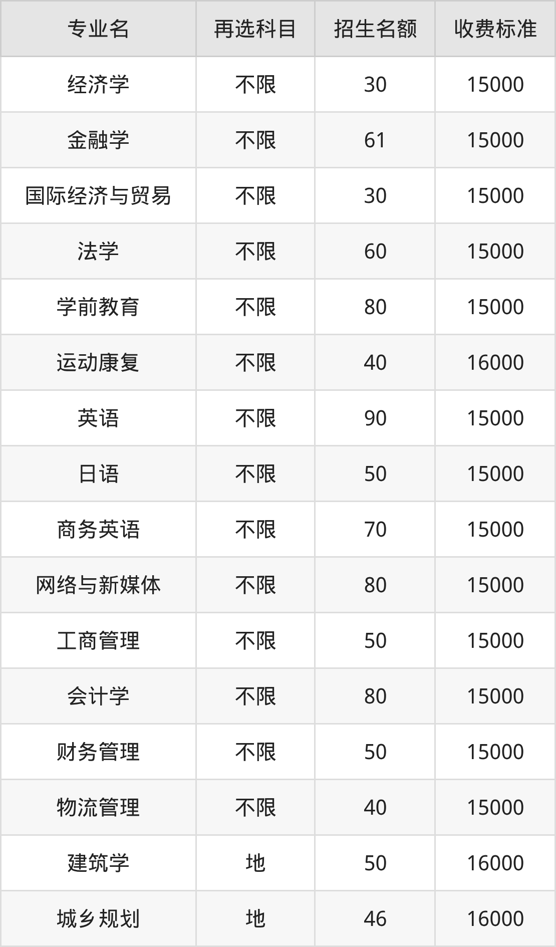 | 本科批 | 物理 | 国际经济与贸易 | 13 |