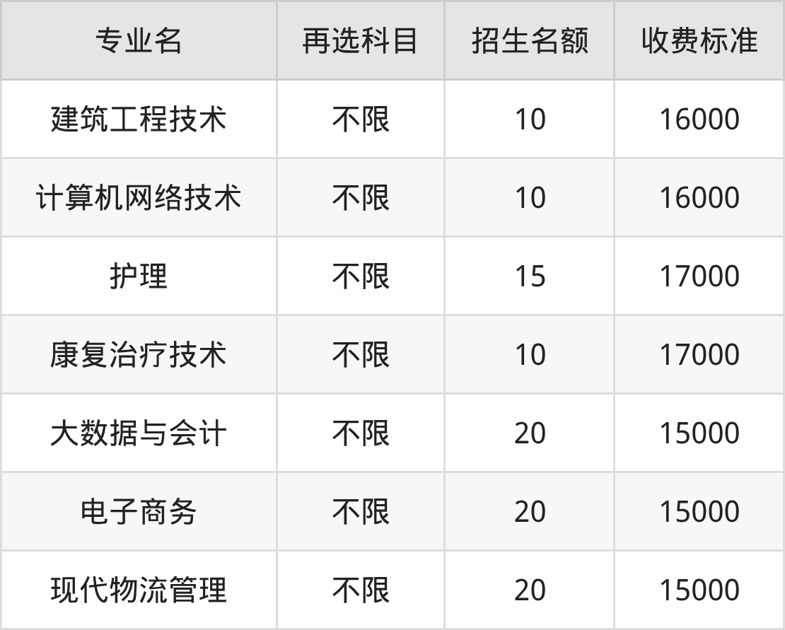 | 高职专科批 | 物理 | 现代物流管理 | 10 |
