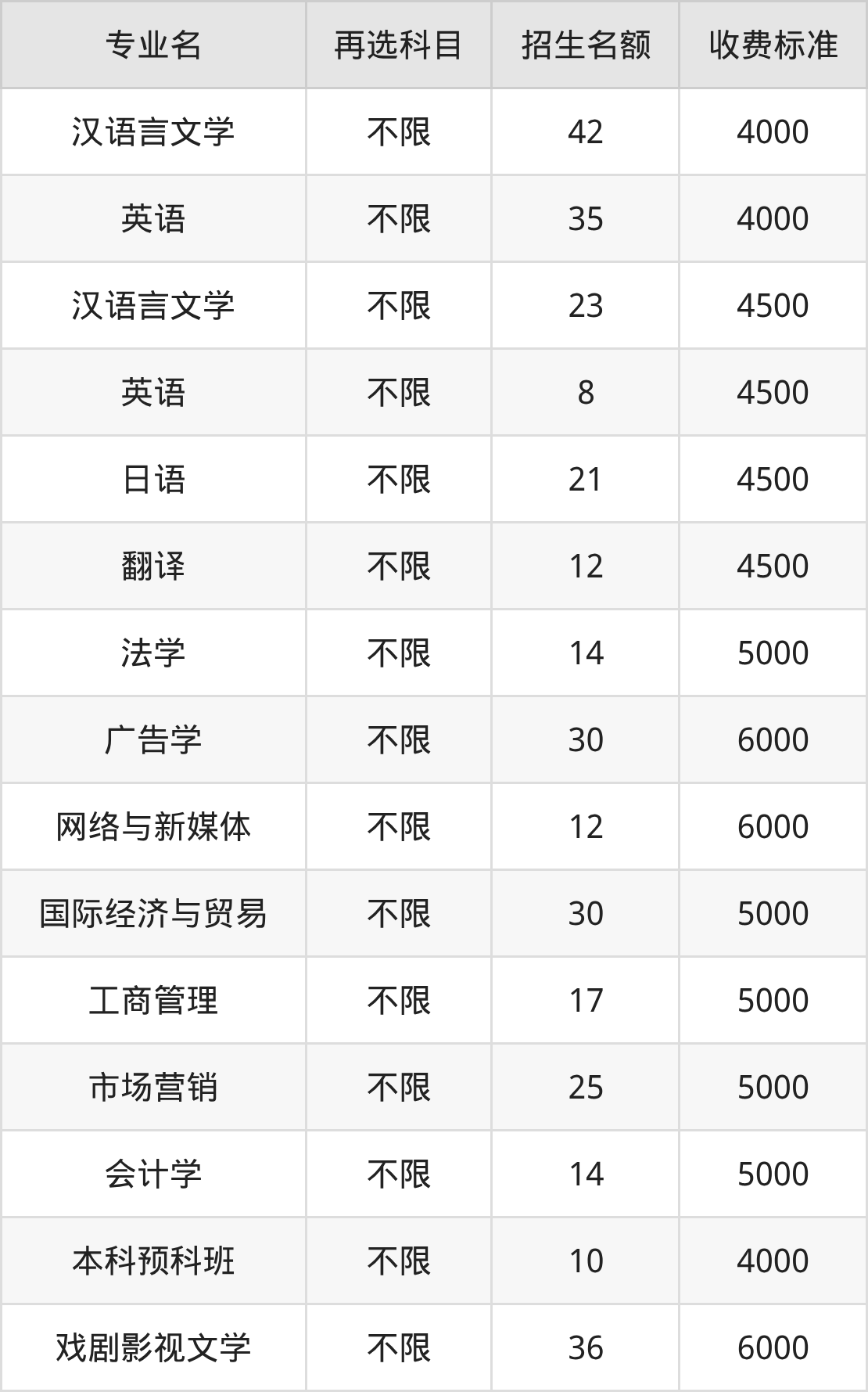 3.汉语言文学:学费是4000元