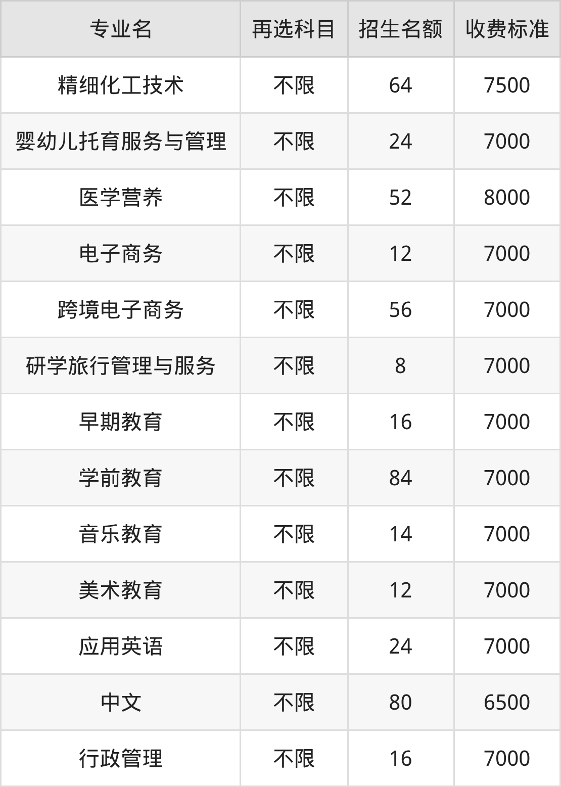 | 批次 | 首选 科目 | 专业名 | 招生 名额 |