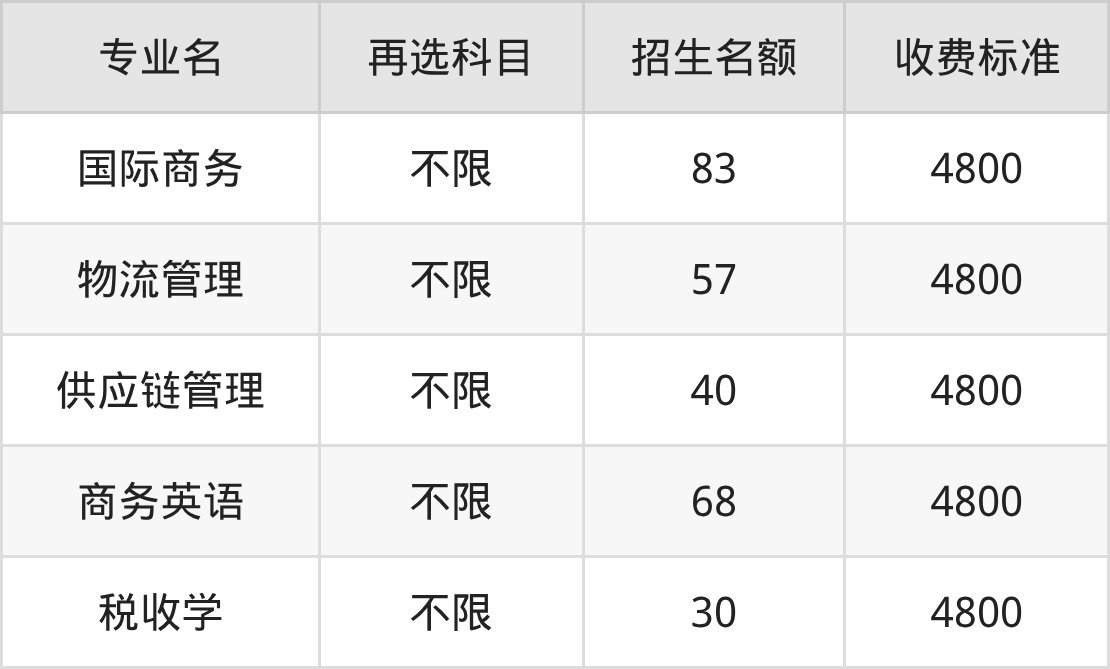 | 本科批B段 | 物理 | 国际商务 | 5 |