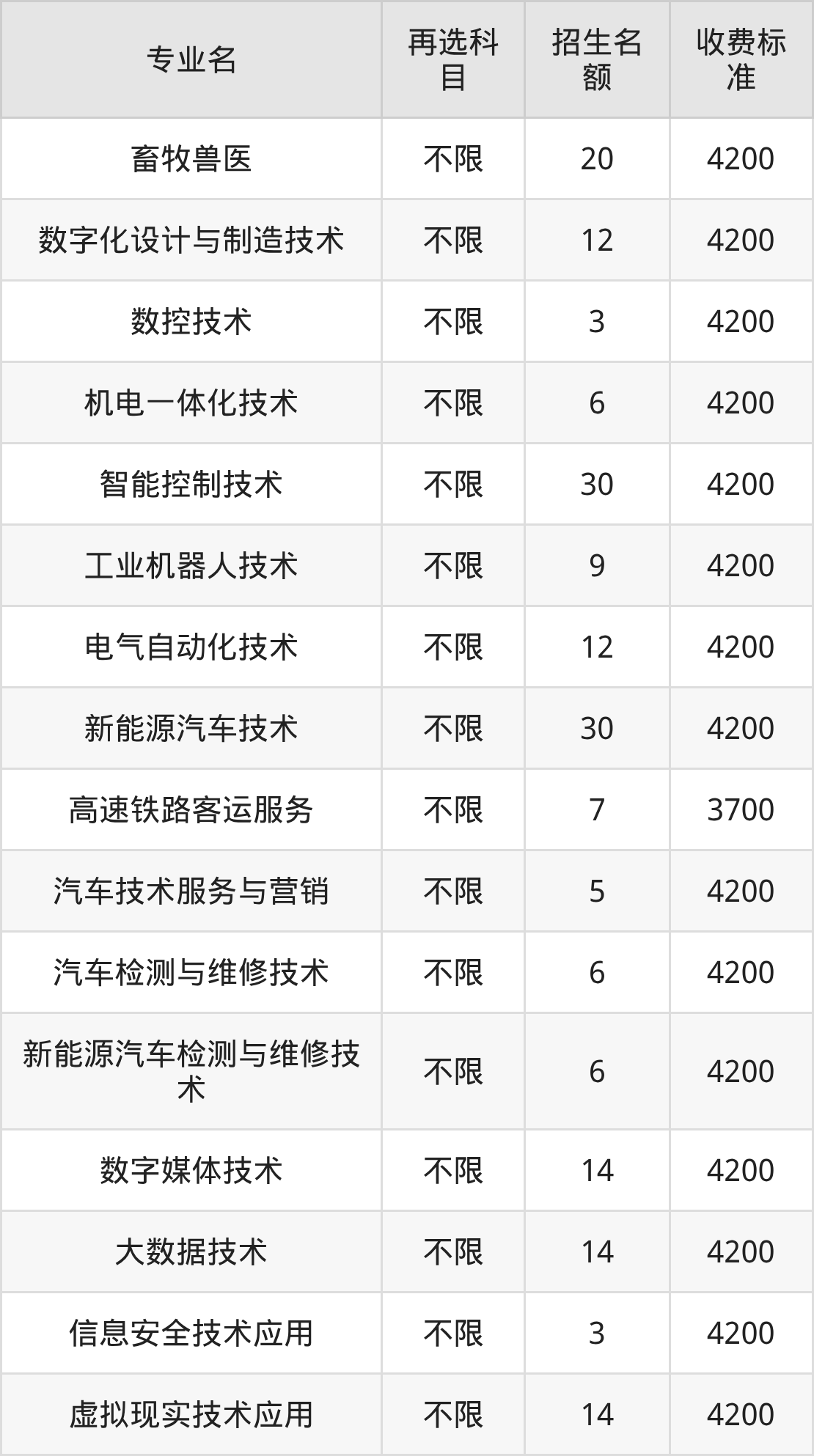 4.机电一体化技术:学费是4200元