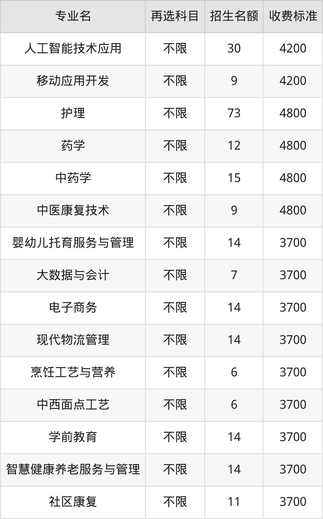 | 高职专科批 | 历史 | 智慧健康养老服务与管理 | 14 |
