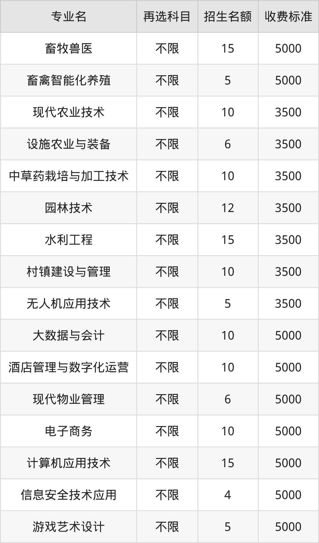 | 高职专科批 | 历史 | 畜禽智能化养殖 | 5 |