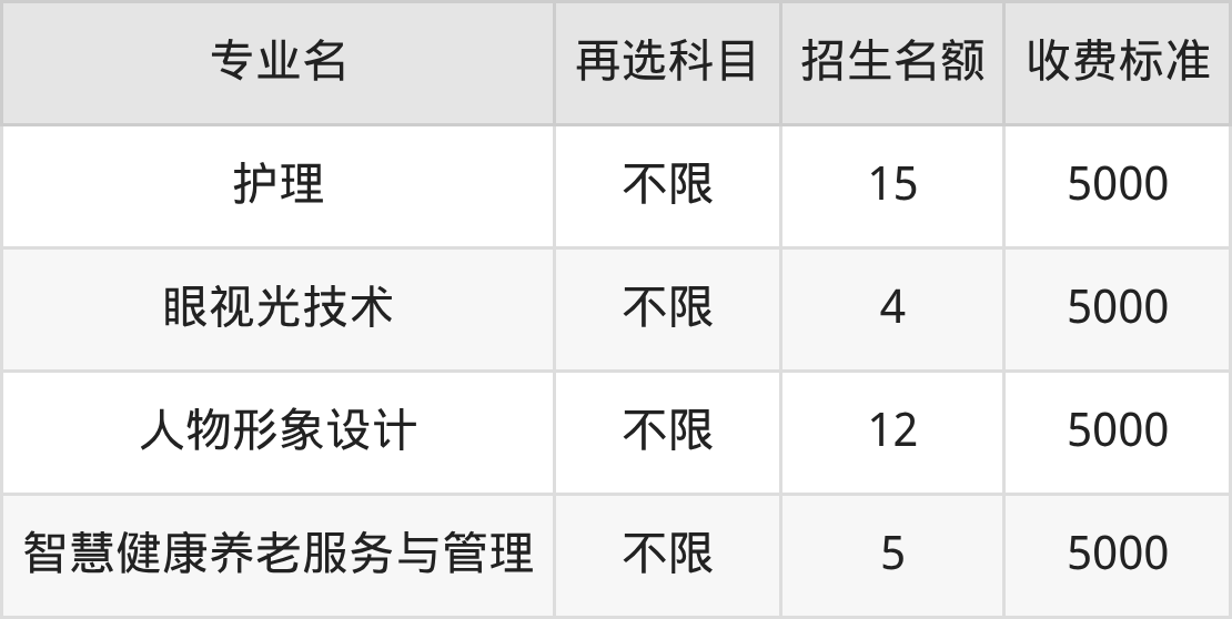 | 高职专科批 | 历史 | 智慧健康养老服务与管理 | 5 |
