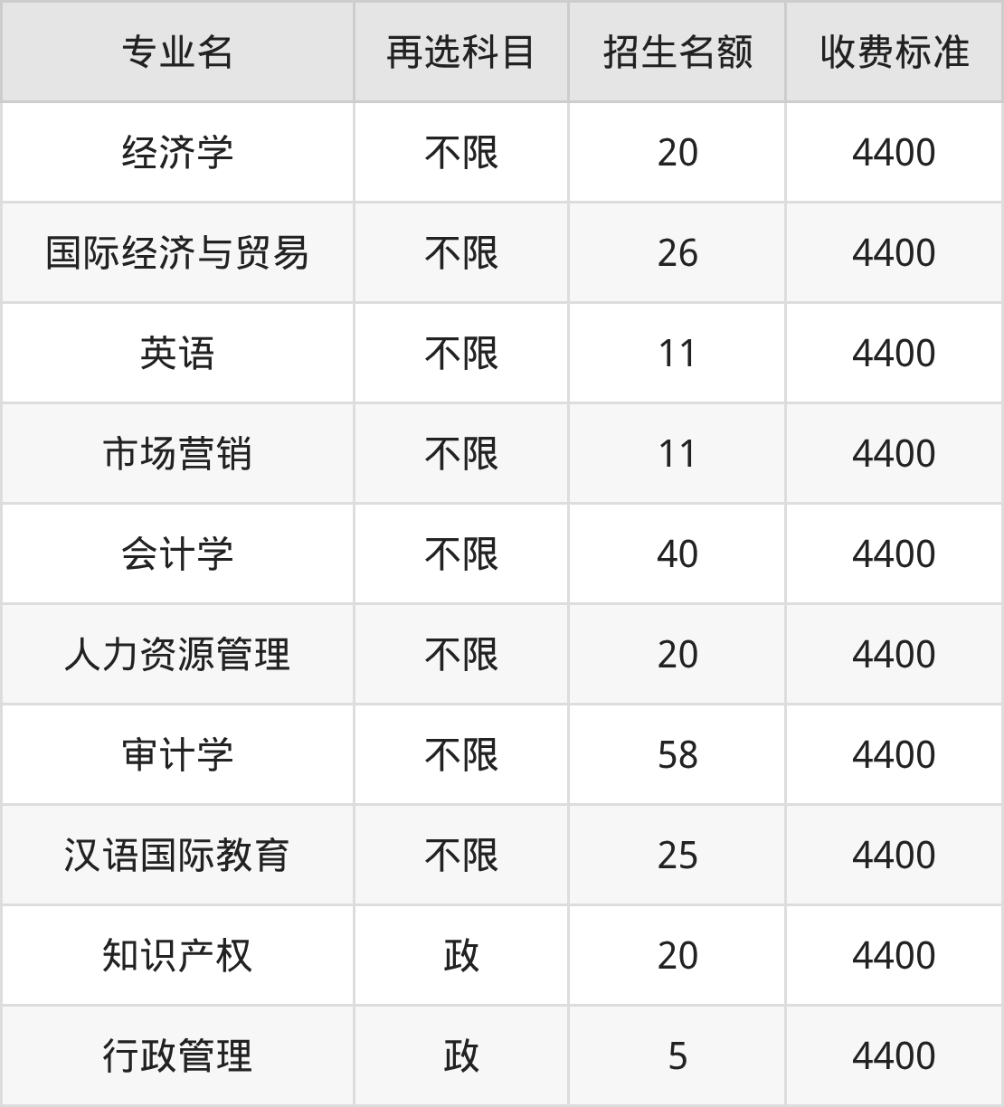 10.物流管理:学费是4400元