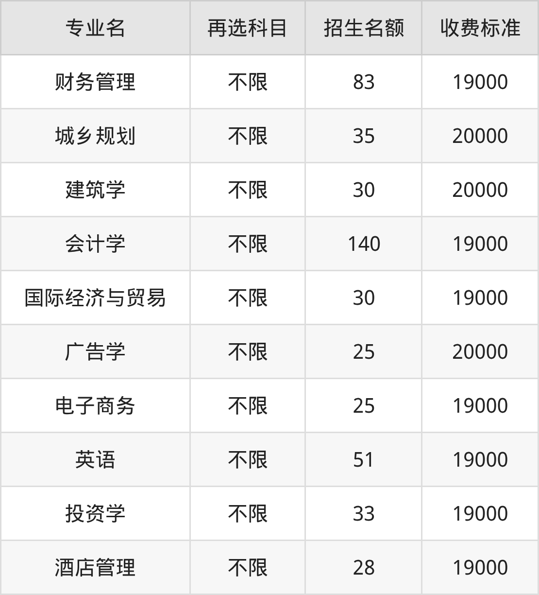 8.国际经济与贸易:学费是19000元