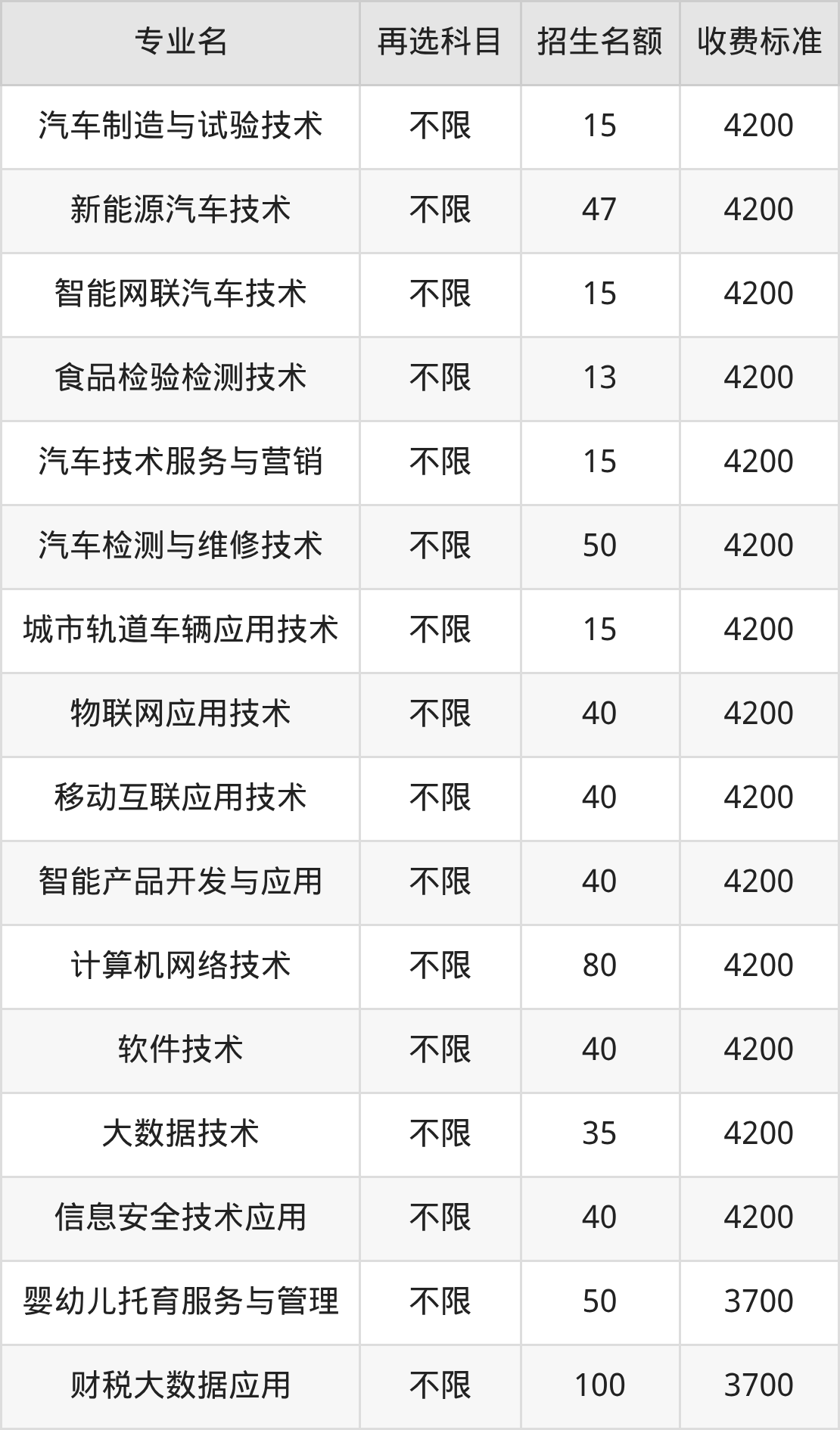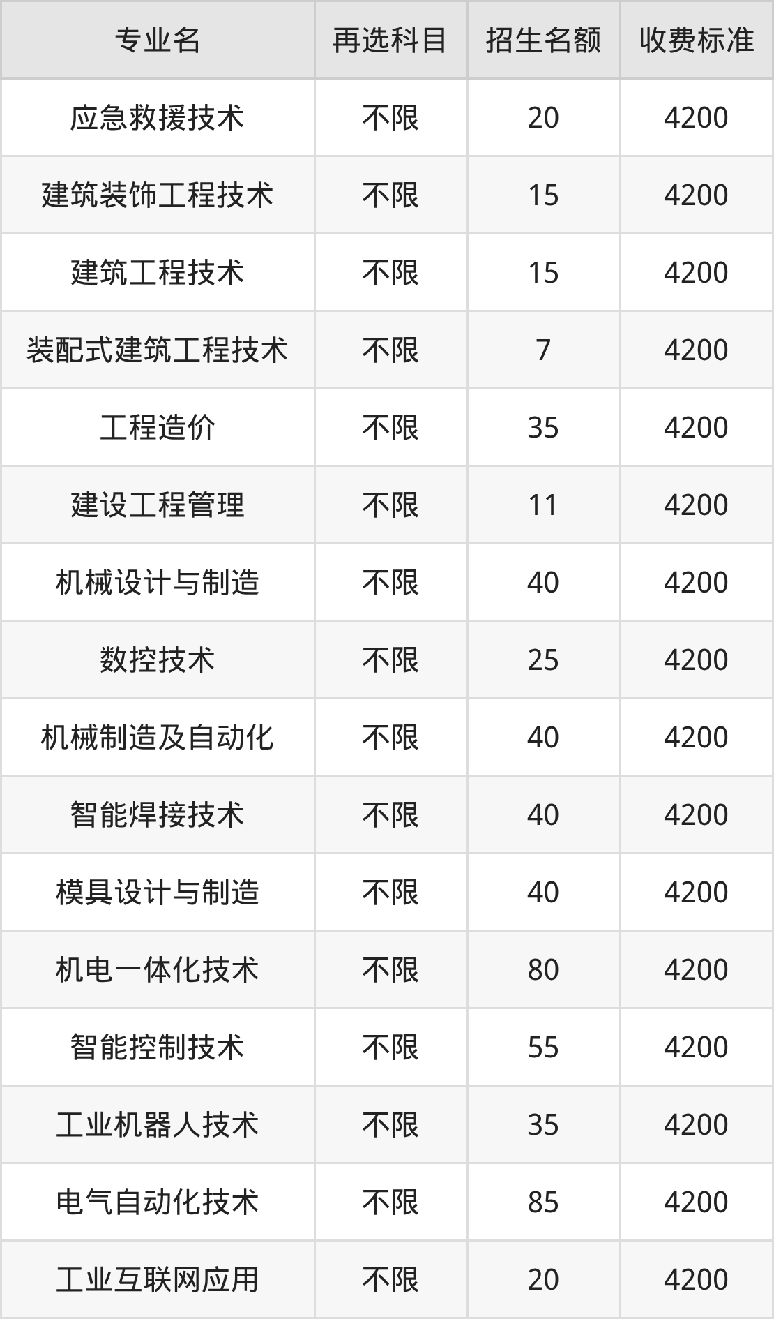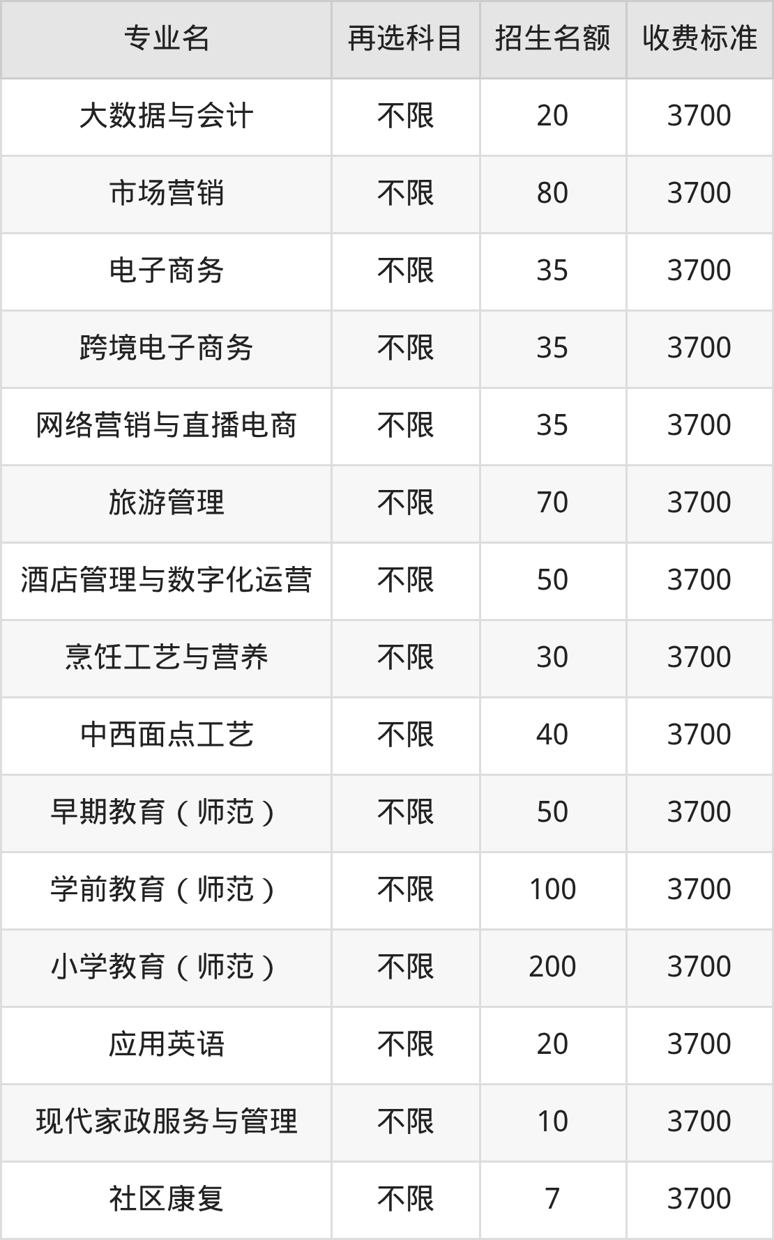 新乡职业技术学院在历史组高职专科批招生的各个专业,每年的学费是3700元-4200元。招生人数最多的专业是小学教育,2025年招200人,学费是3700元。