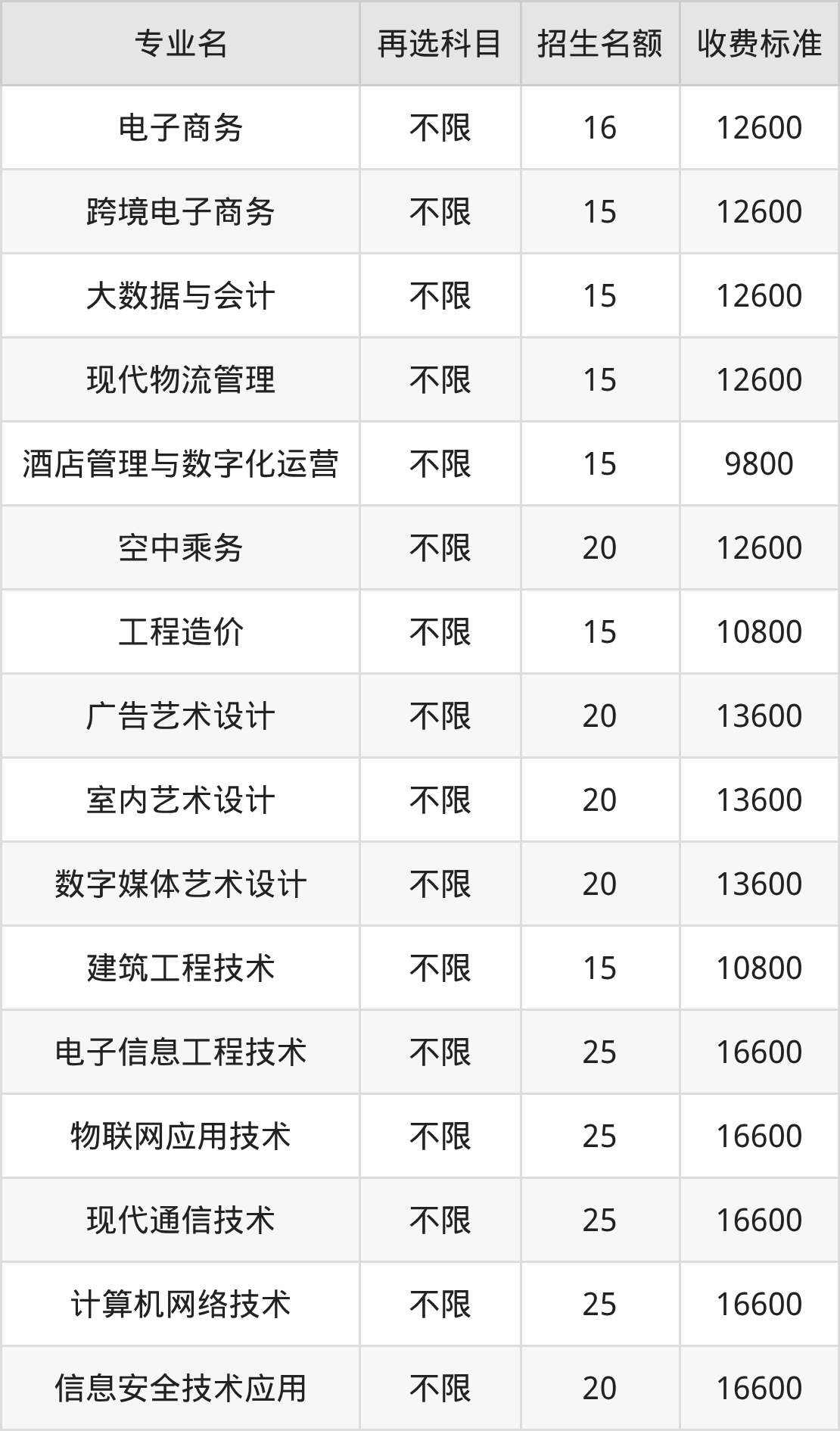 | 高职高专批 | 物理 | 酒店管理与数字化运营 | 15 |