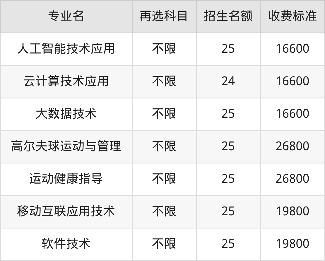 | 高职高专批 | 历史 | 高尔夫球运动与管理 | 25 |