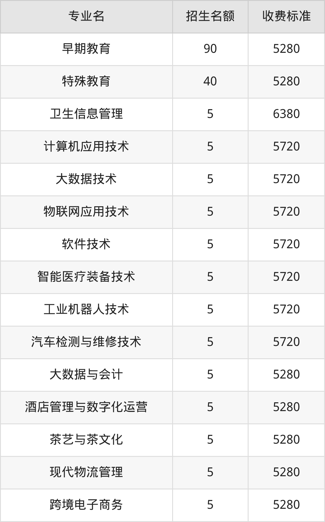 | 高职专科批 | 茶艺与茶文化 | 5 |