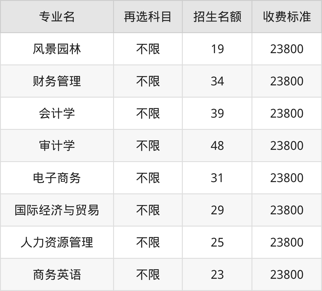 8.国际经济与贸易:学费是23800元
