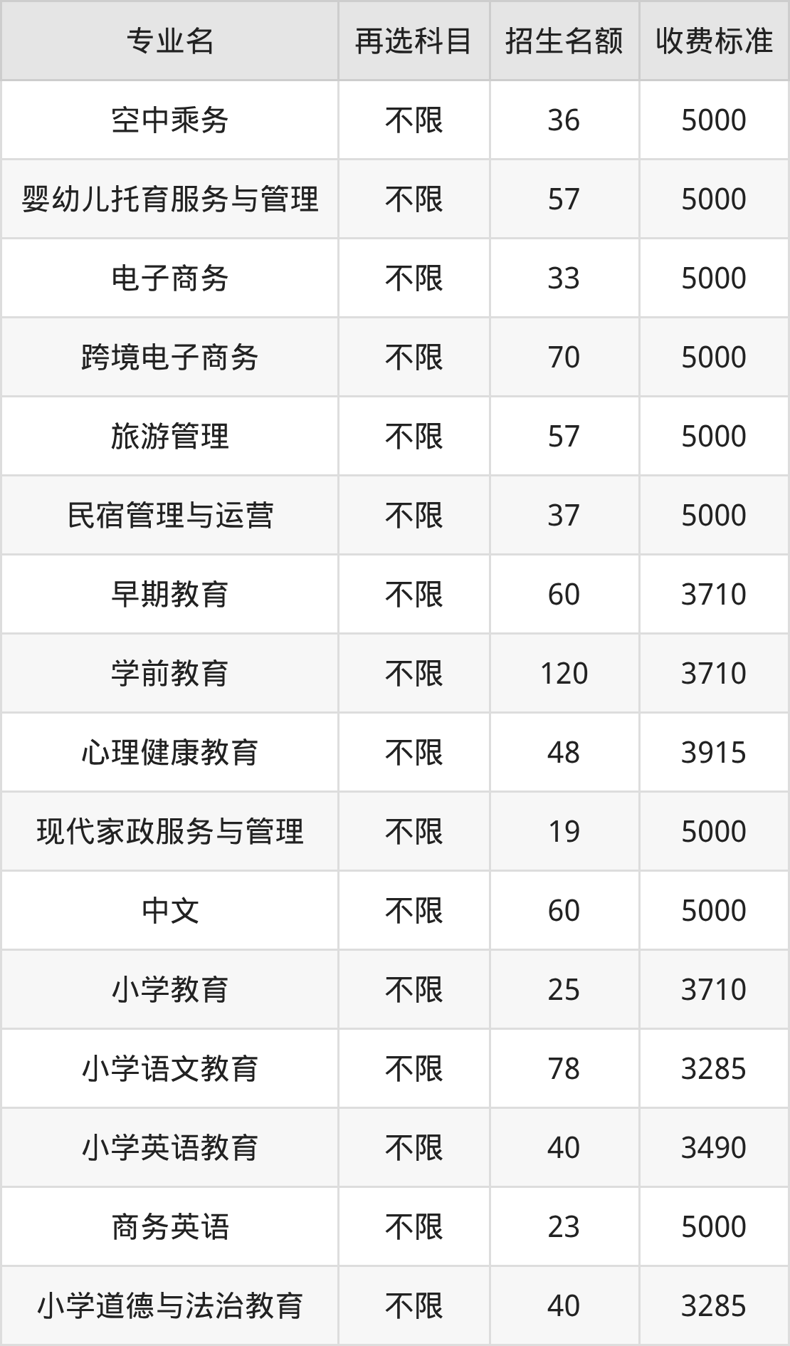 | 高职专科批 | 历史 | 民宿管理与运营 | 37 |