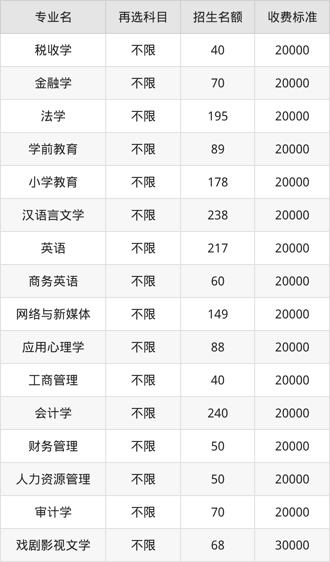 燕京理工学院在历史组本科批招生的各个专业,每年的学费是20000元-30000元。招生人数最多的专业是会计学,2025年招240人,学费是20000元。