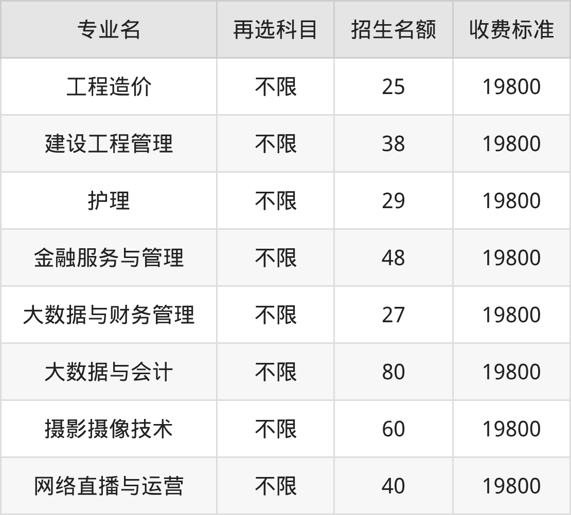 燕京理工学院在历史组专科批招生的各个专业,每年的学费是19800元。招生人数最多的专业是大数据与会计,2025年招80人,学费是19800元。