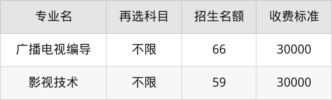 | 专科批 | 历史 | 摄影摄像技术 | 60 |