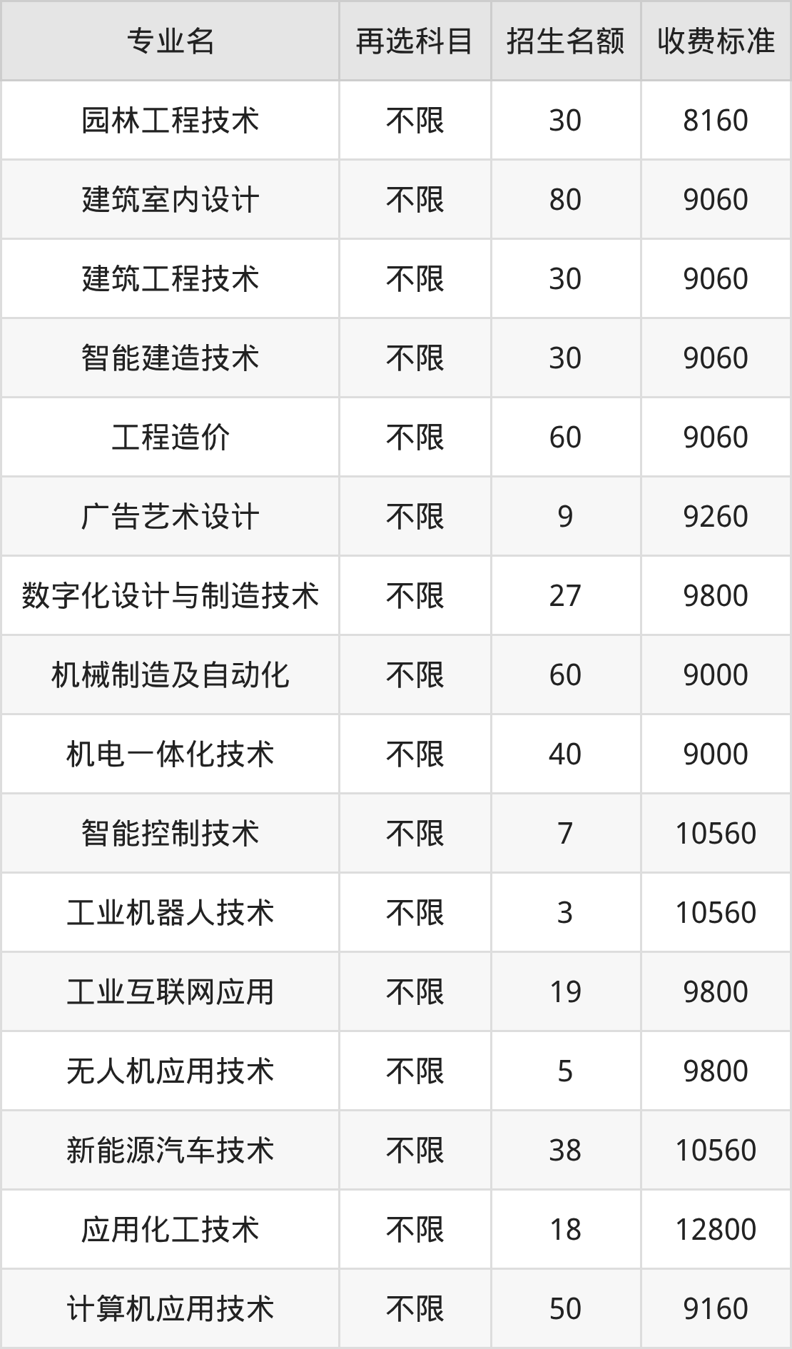 二、江西枫林涉外经贸职业学院各专业收费标准