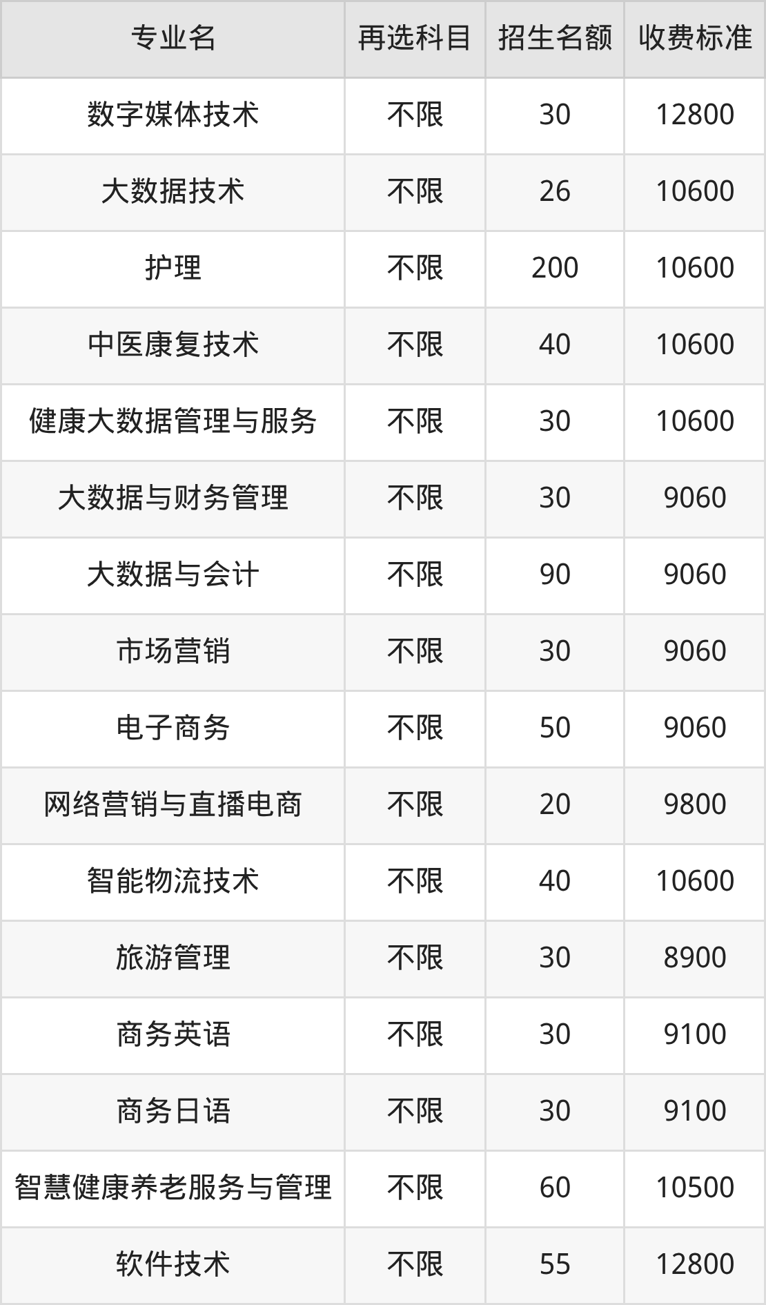 江西枫林涉外经贸职业学院在历史组高职专科批招生的各个专业,每年的学费是8160元-12800元。招生人数最多的专业是护理,2025年招200人,学费是10600元。