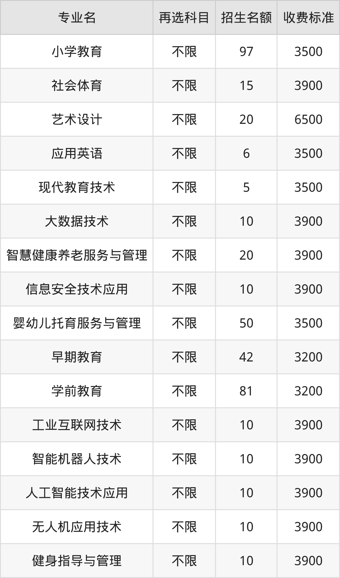 | 高职专科批 | 历史 | 早期教育 | 42 |