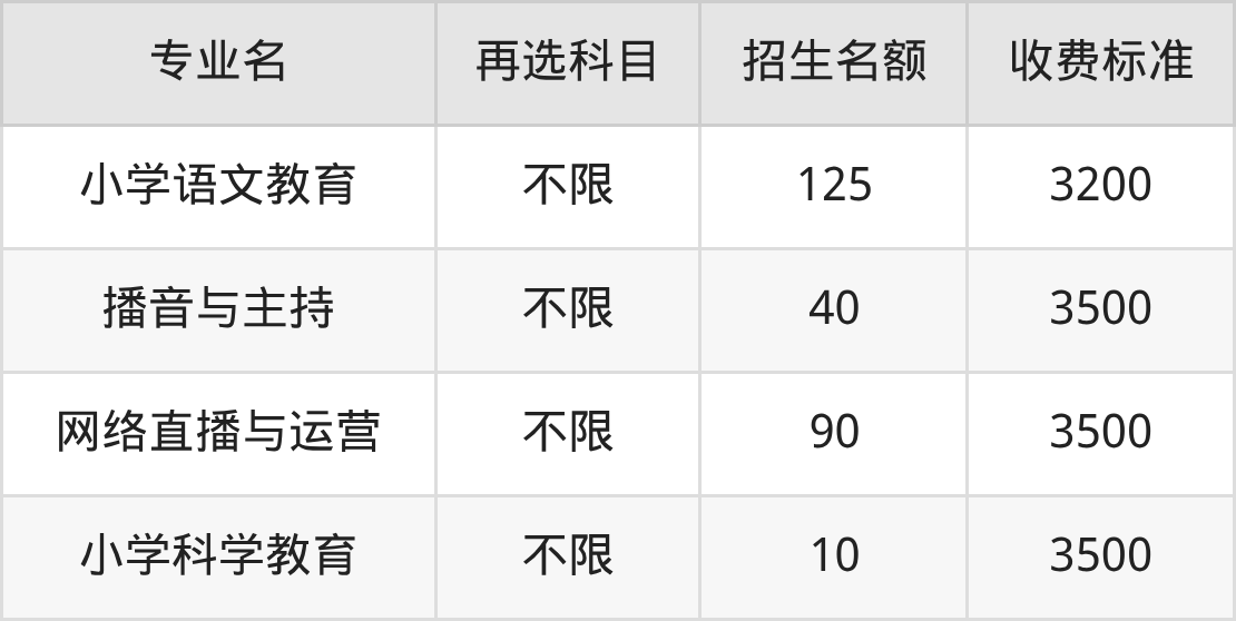 | 高职专科批 | 物理 | 小学语文教育 | 20 |
