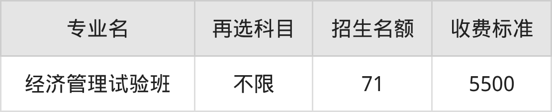 | 本科批 | 历史 | 经济管理试验班 | 71 |