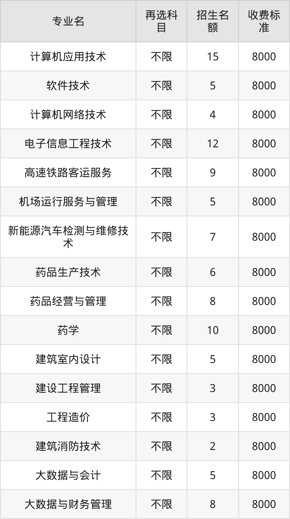 云南科技信息职业学院在历史组高职专科批招生的各个专业,每年的学费是8000元。招生人数最多的专业是计算机应用技术,2025年招15人,学费是8000元。