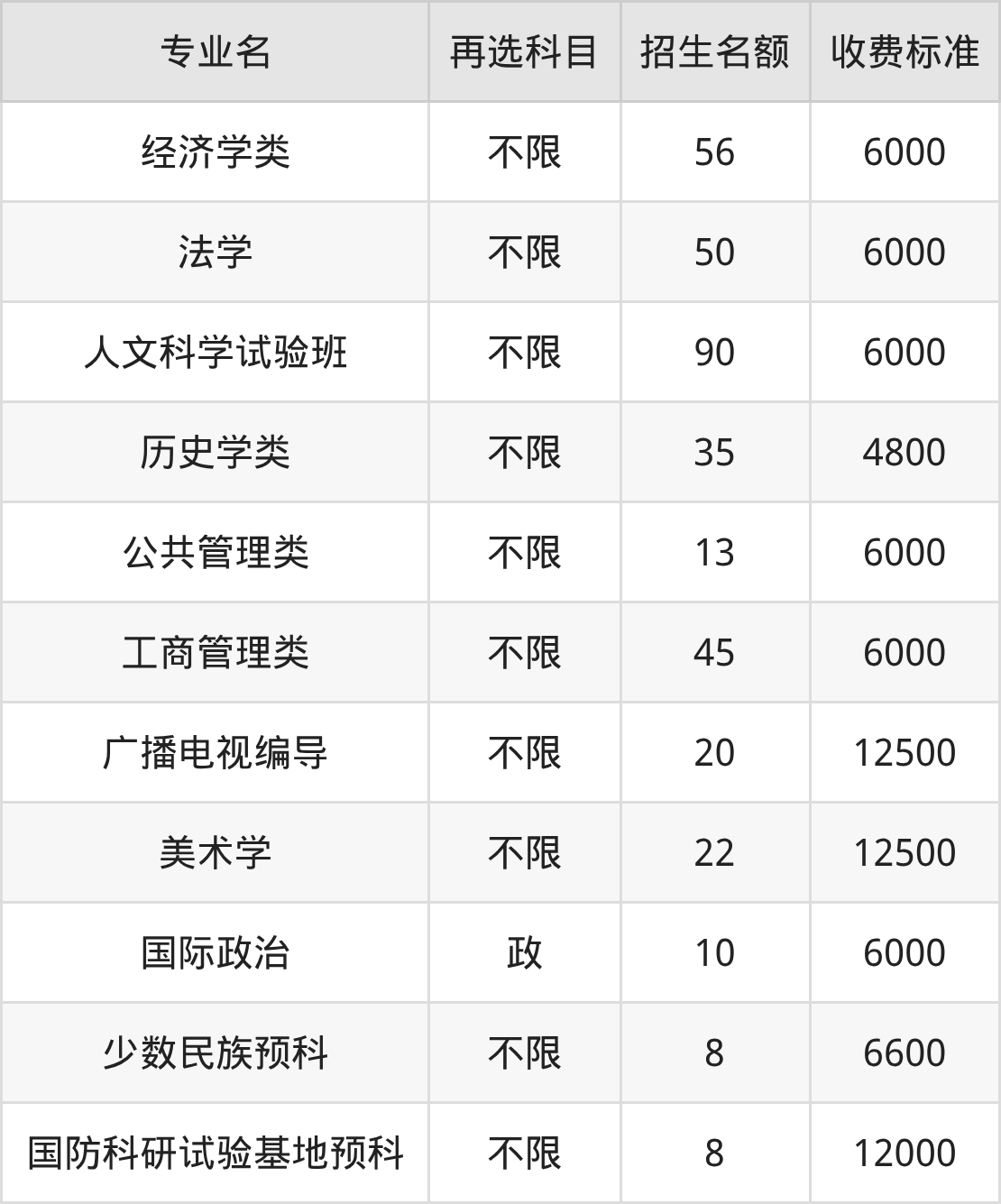 | 批次 | 首选 科目 | 专业名 | 招生 名额 |